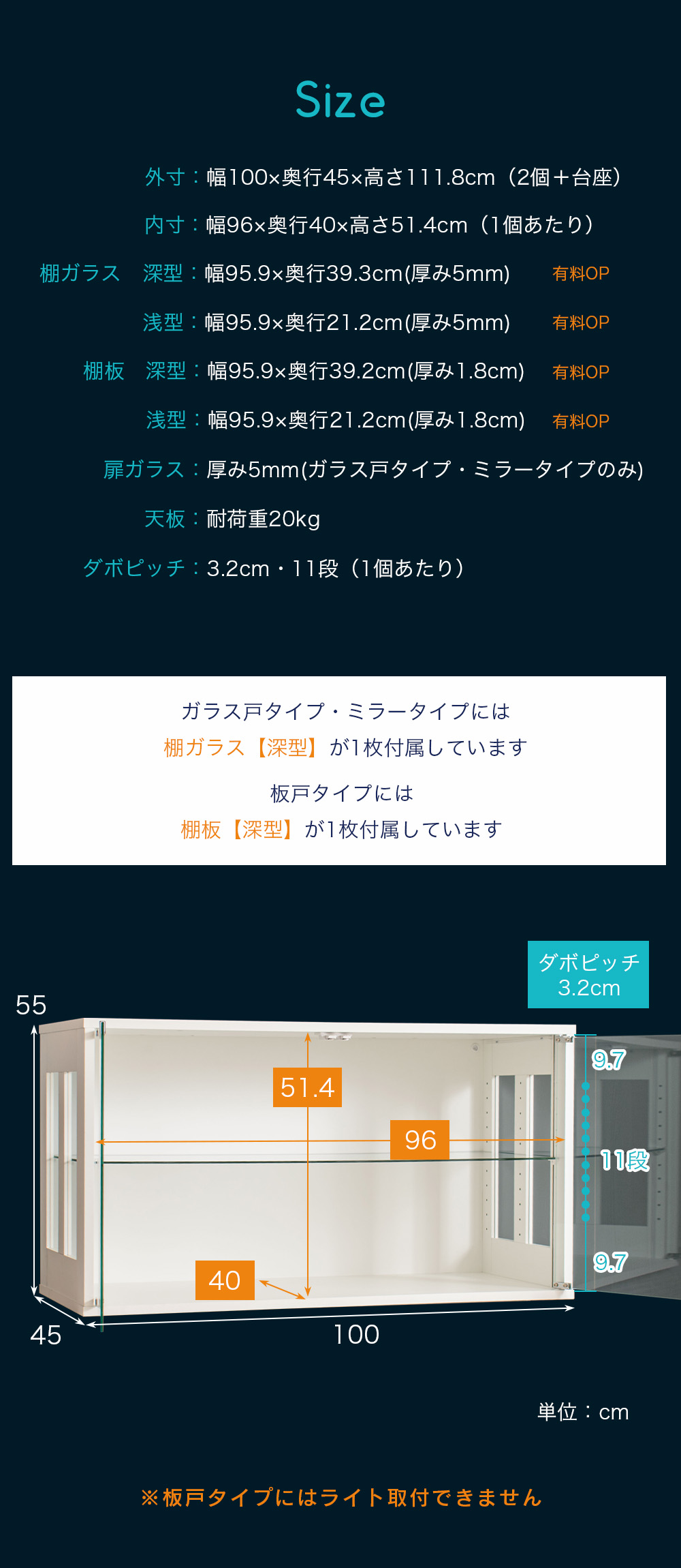 - 自分好みに組み合わせて使える幅100cmの大容量コレクションケース。