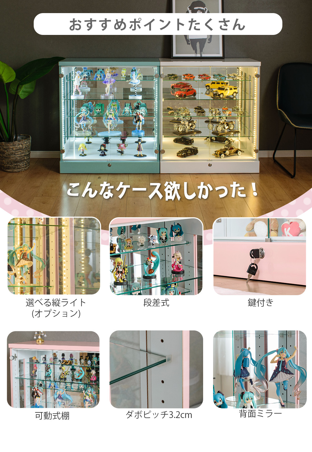 • 鍵付きなので大切なコレクションを守ることができる