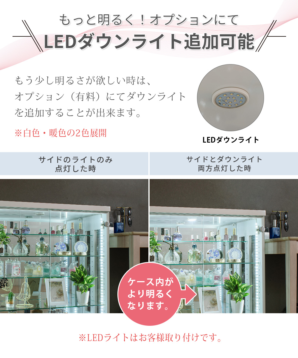コレクションボード 奥行30cm ガラスショーケース キュリオケース led 収納 グッズ収納 インテリア フィギュア 棚 ラック キャビネット インテリア アクスタ グッズ 【10%OFF / 期間限定】 コレクションケース フィギュア棚 完成品 ダウンライト 幅120cm 高さ85cm ロータイプ ガラスケース ディスプレイ ぬい 推し ペンラ 開梱設置 アイリーン120L