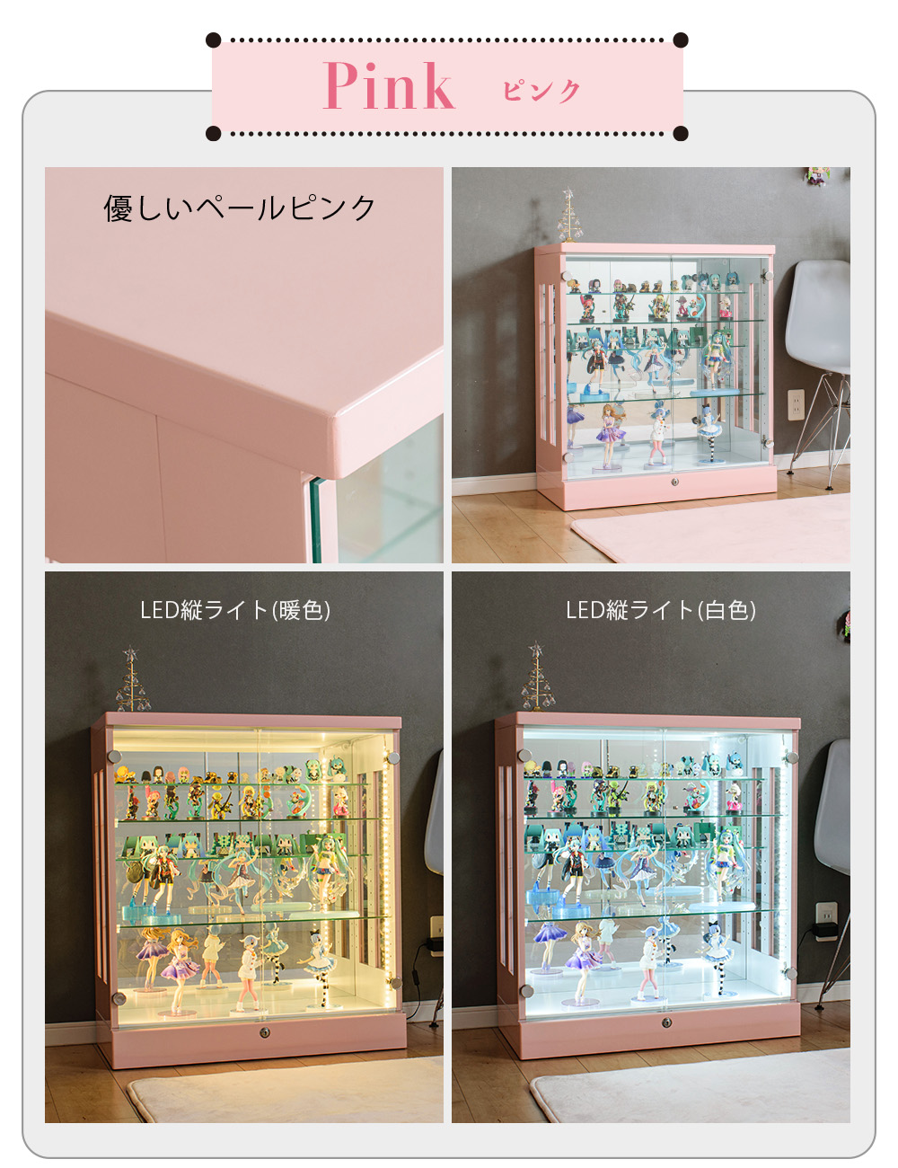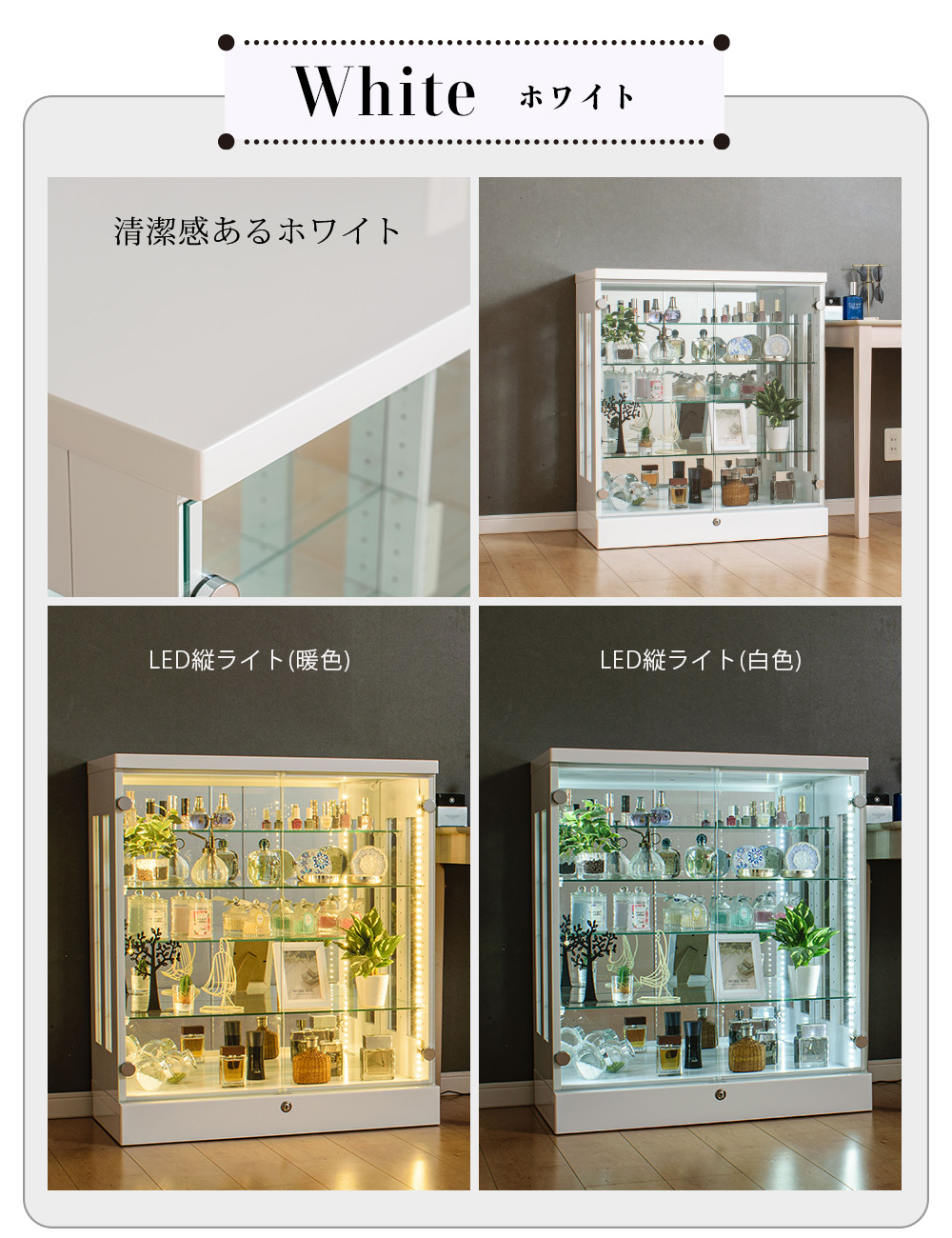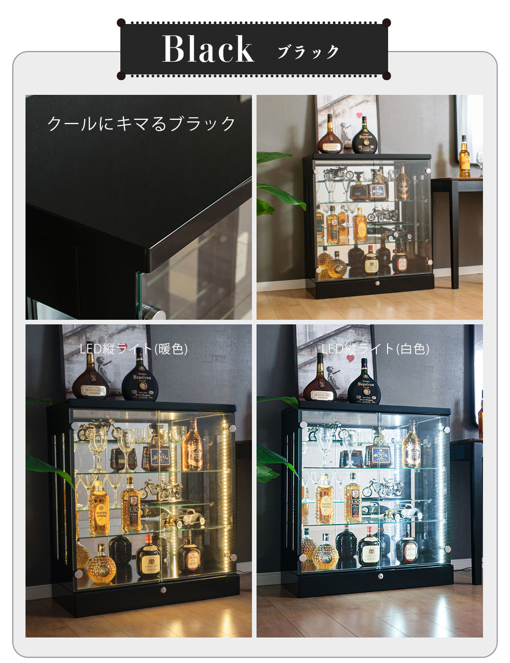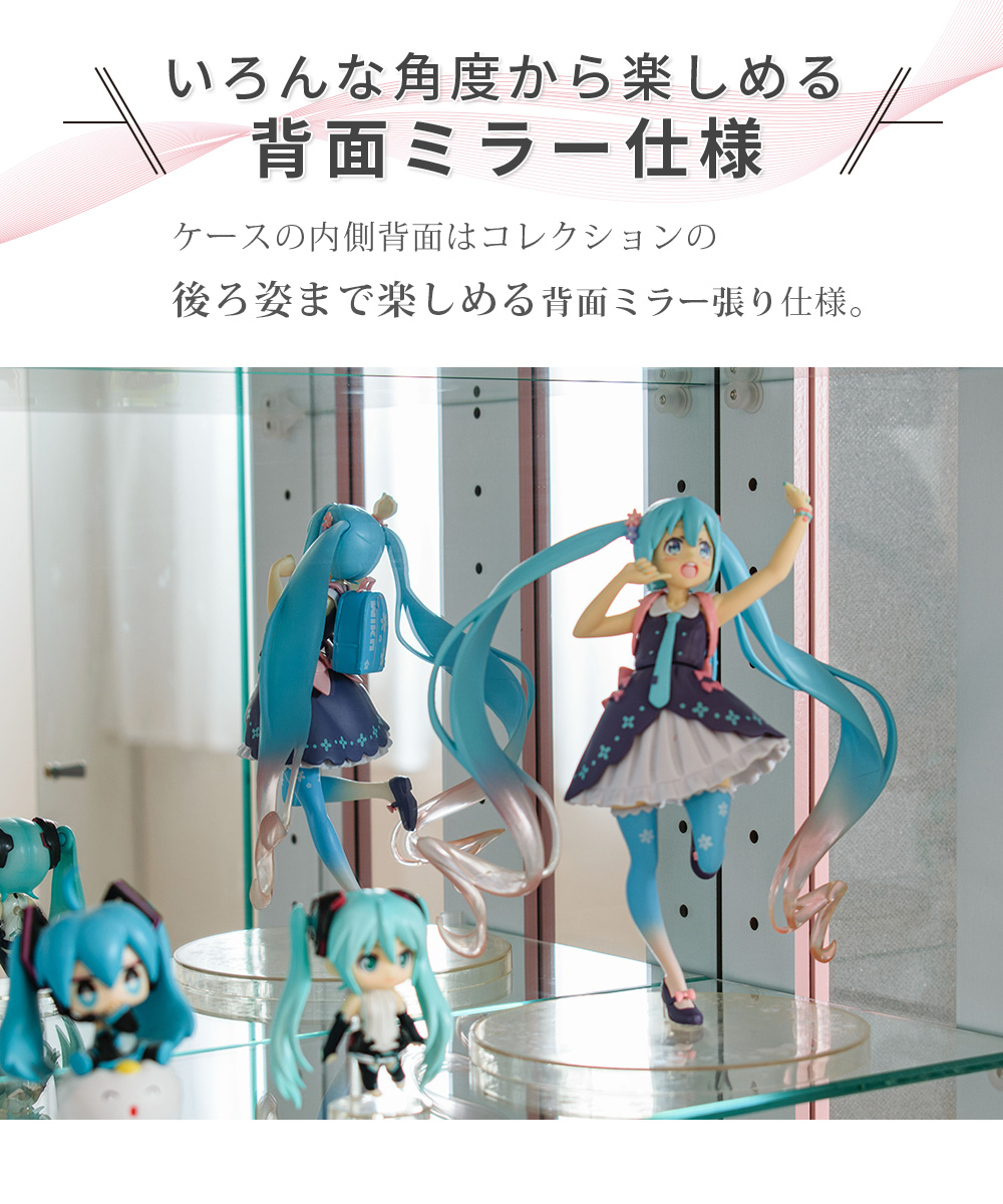 • 内背面ミラー貼りで奥行き感が出て、コレクションが立体的に映えやすい