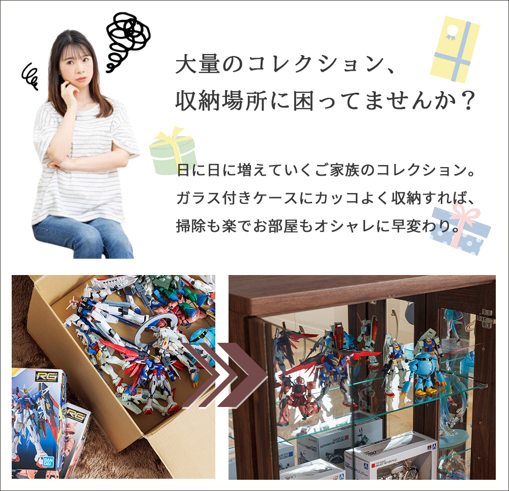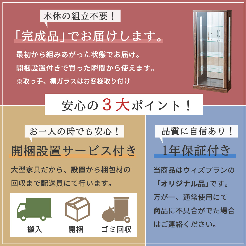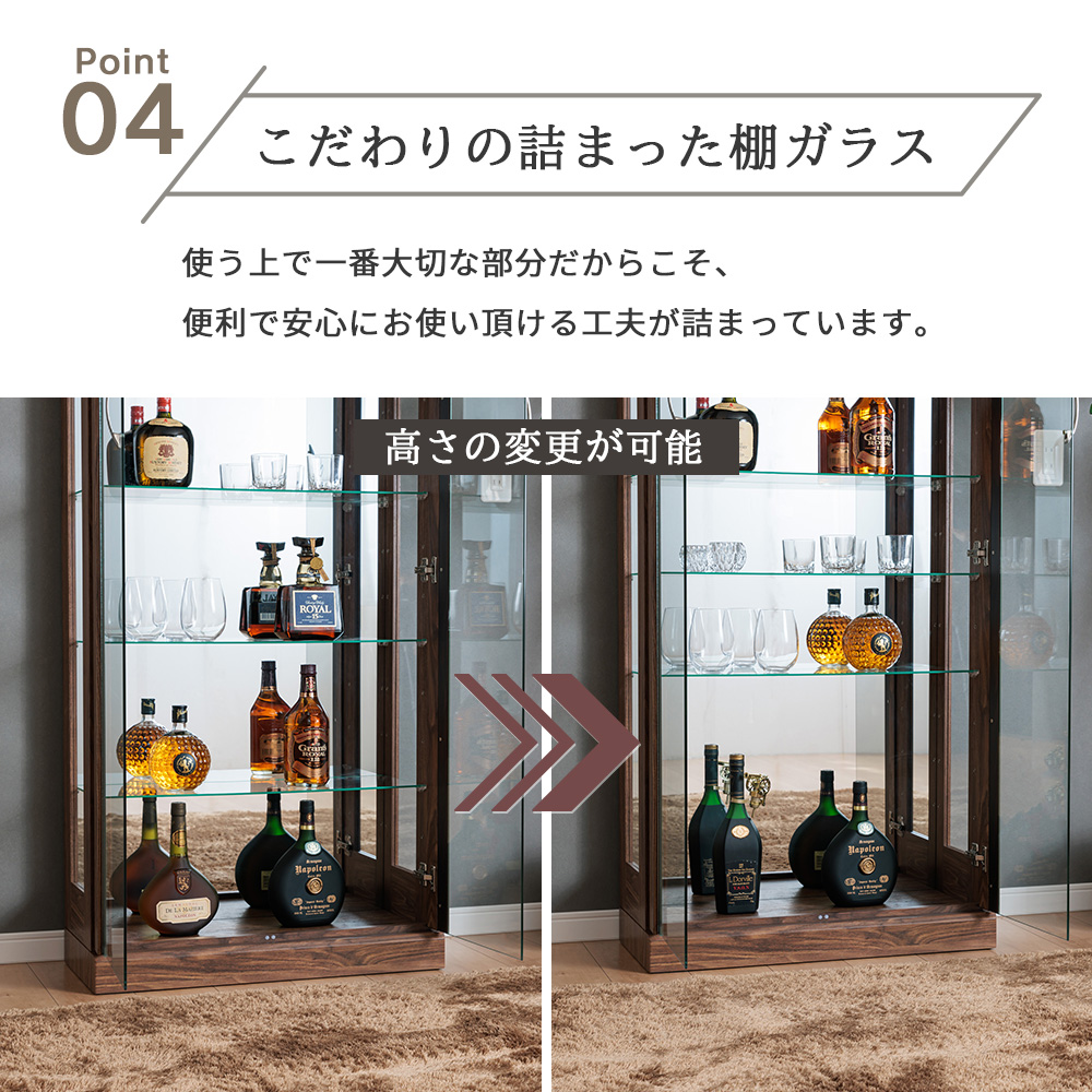 • 追加棚ガラスのオプションがあり、コレクションが増えても“後から収納力アップ”しやすい