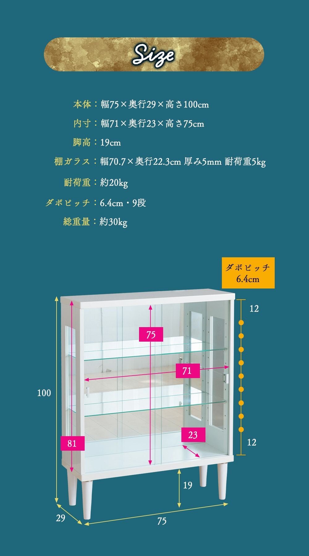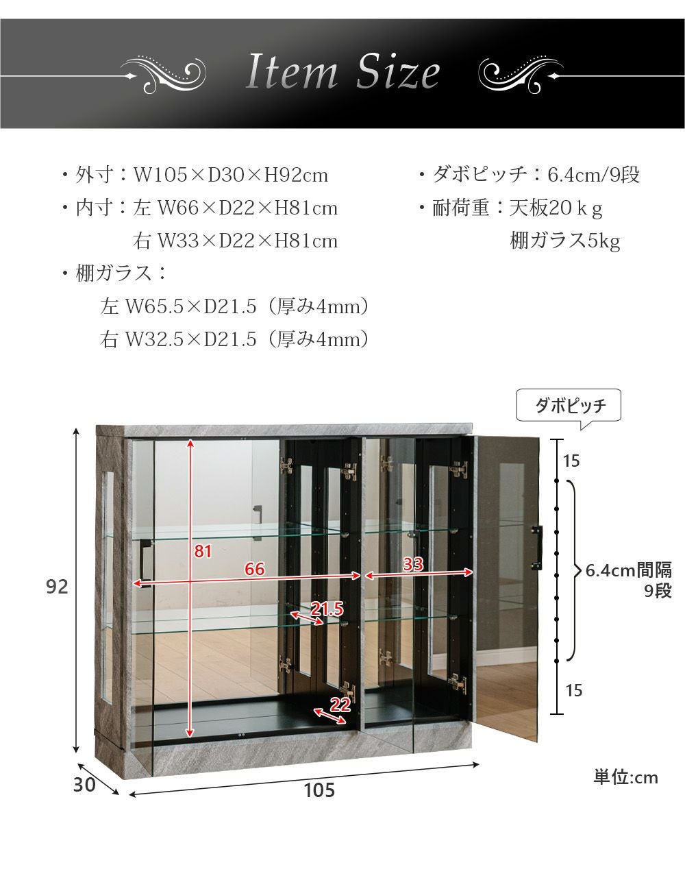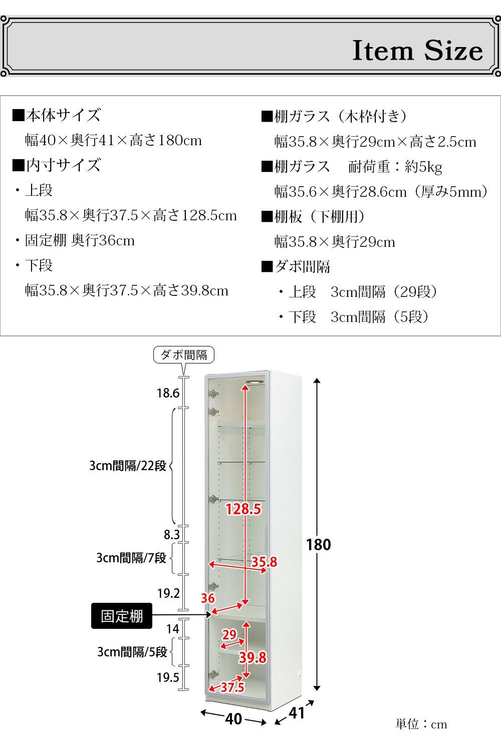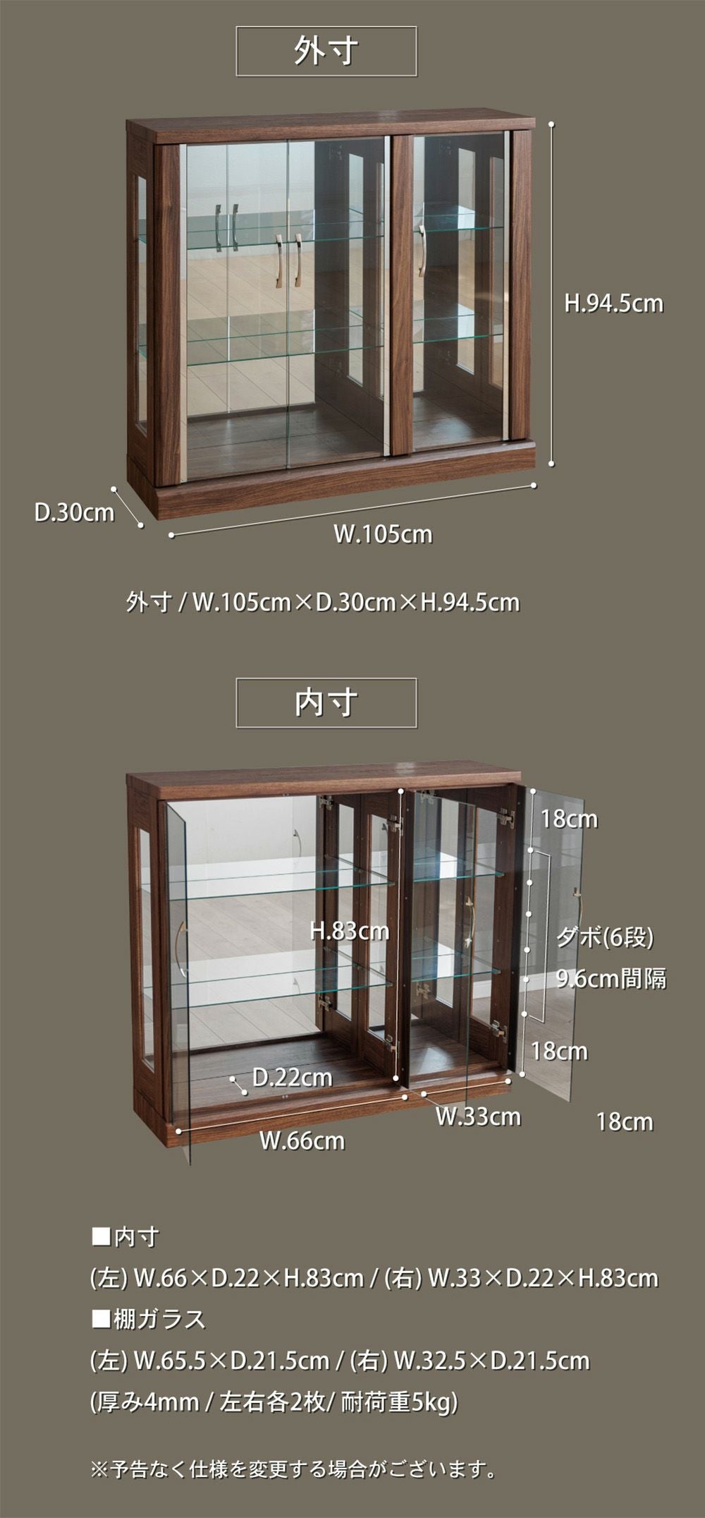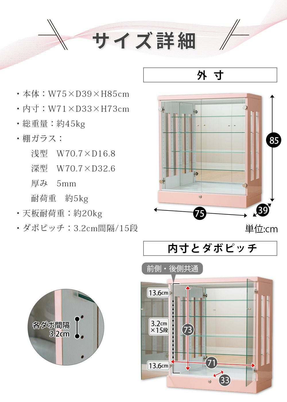 4.「安心して、たくさん飾れる」強化ガラス棚 × L型ダボ仕様