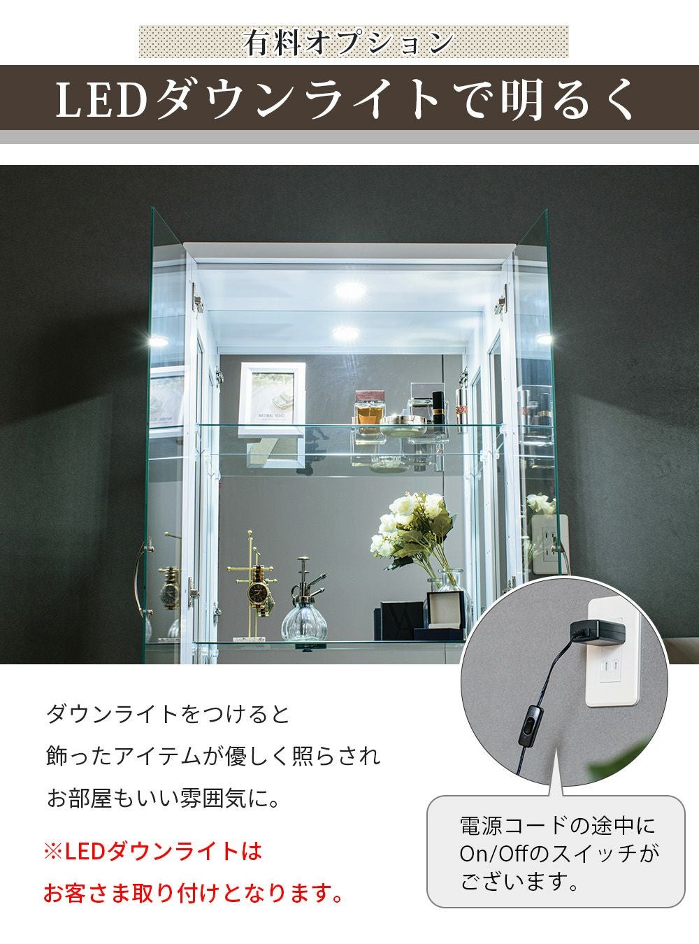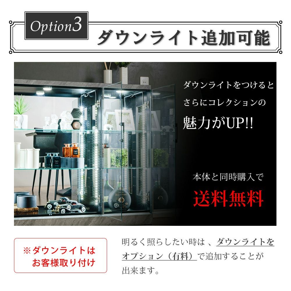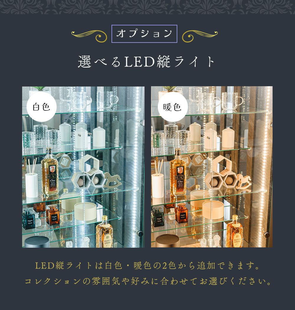 背面ミラーと組み合わせれば光が反射し、より奥行きのある美しいディスプレイ空間に。
