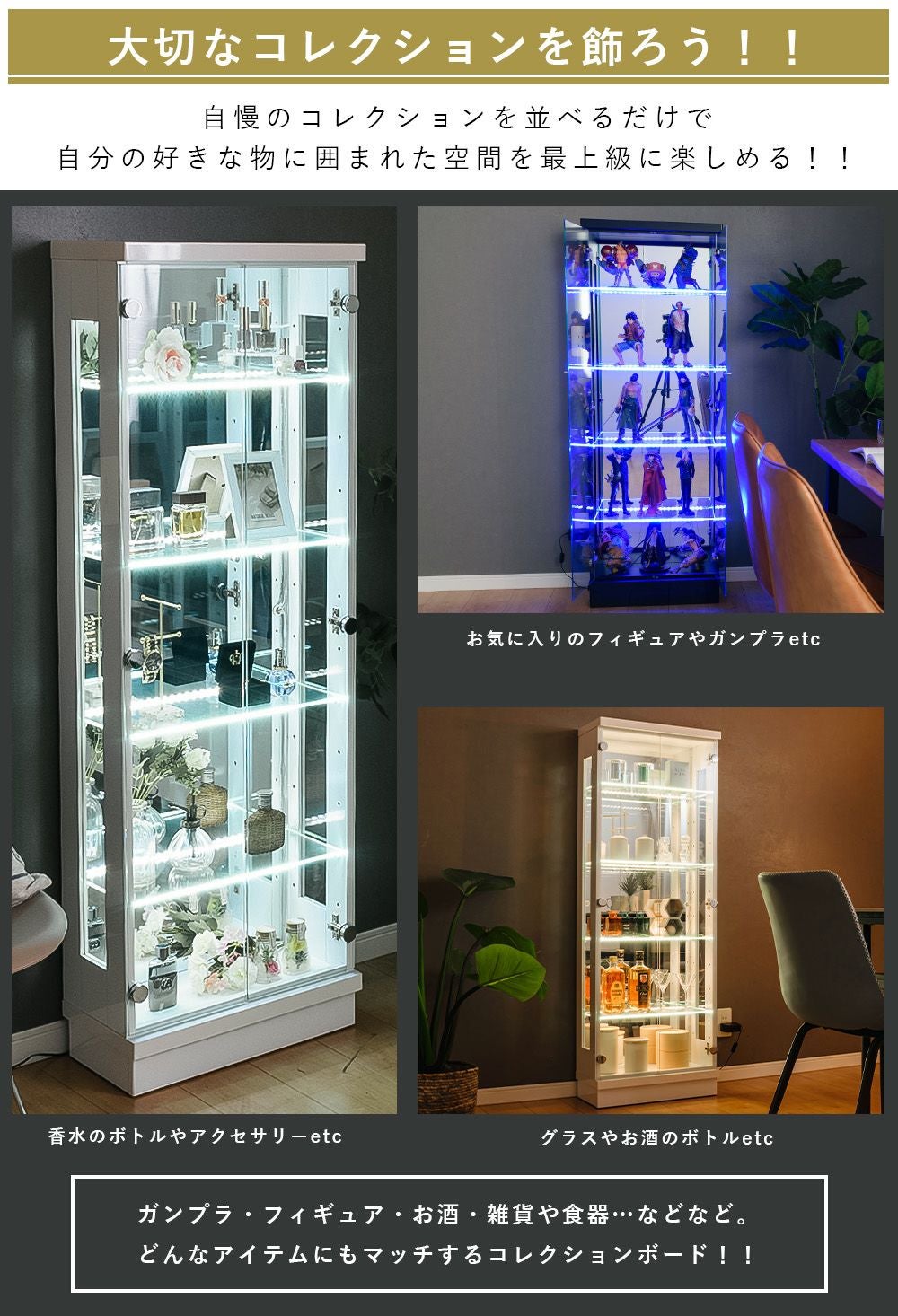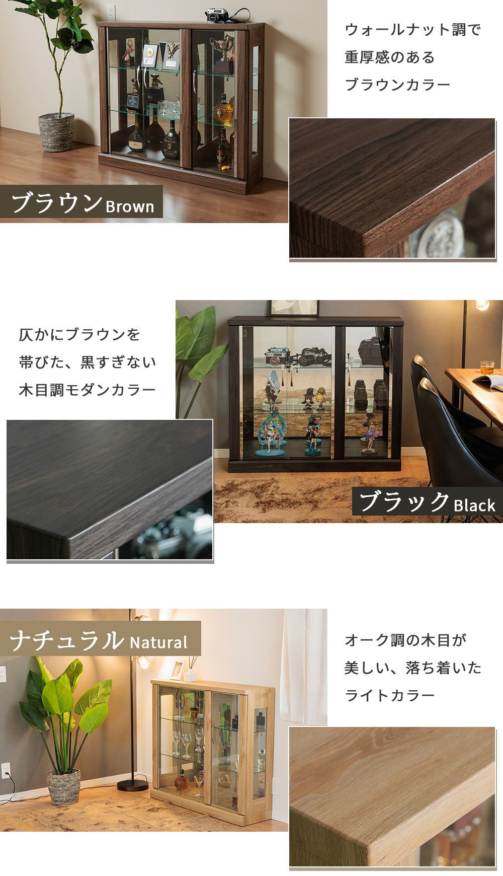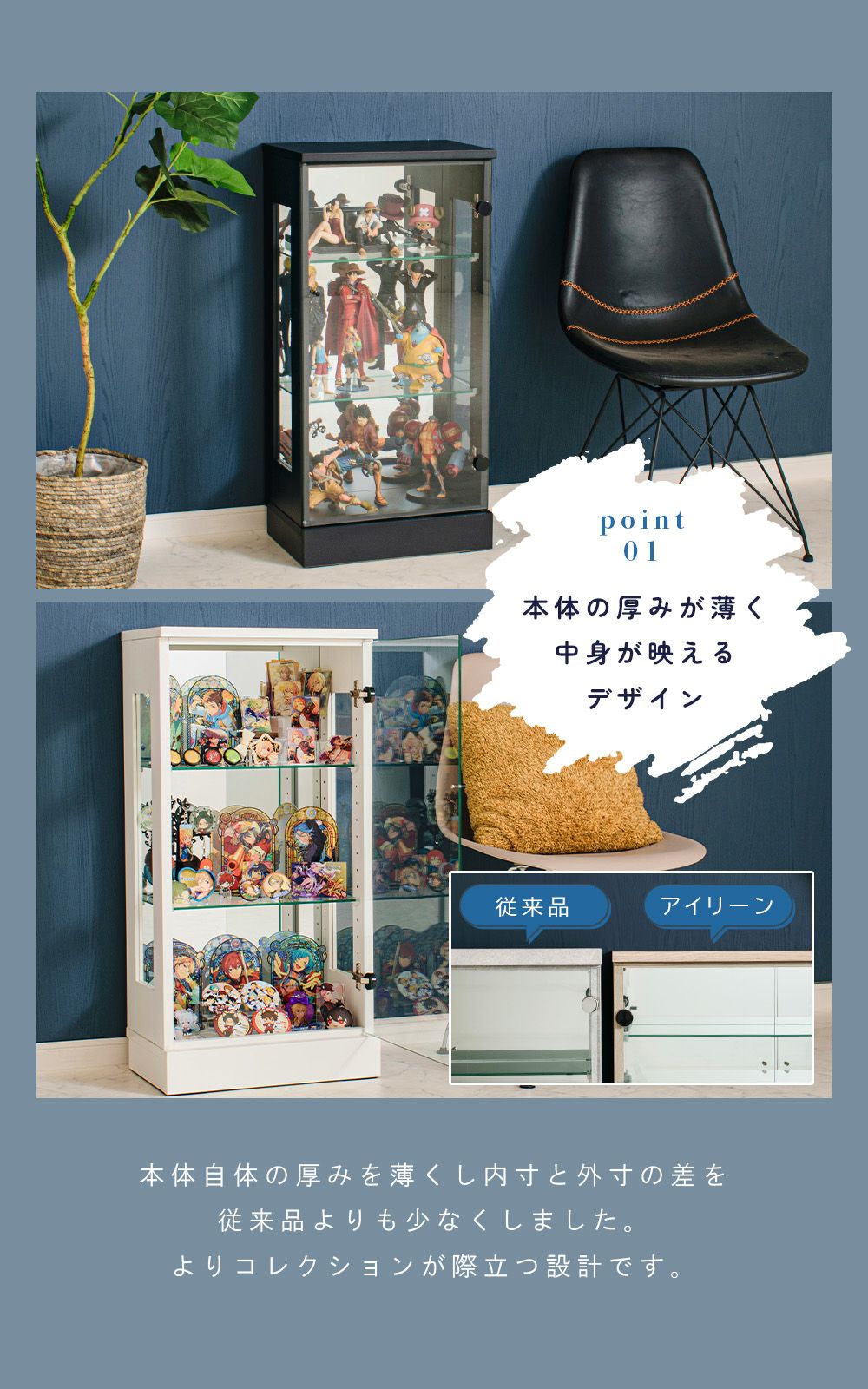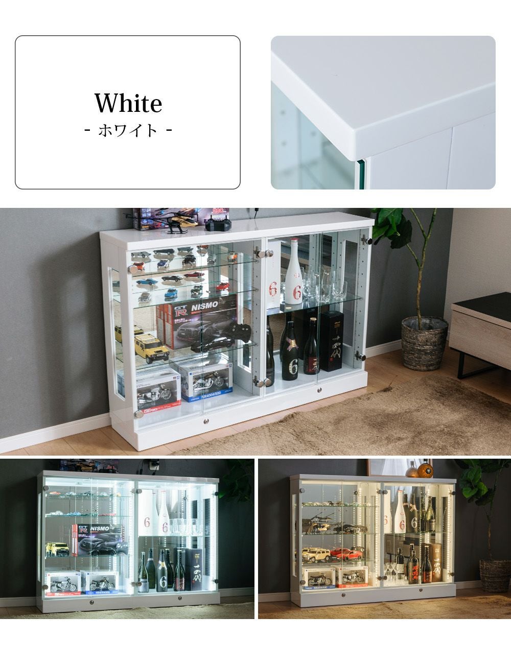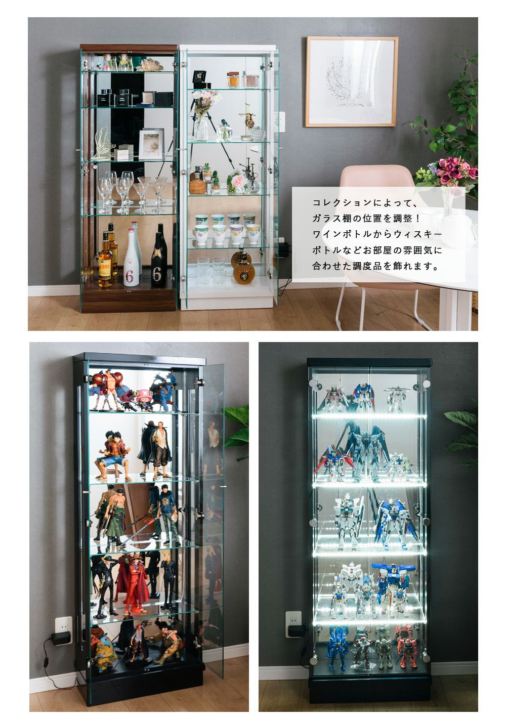 設置スペースやコレクション量に合わせて選べるサイズ展開をご用意。