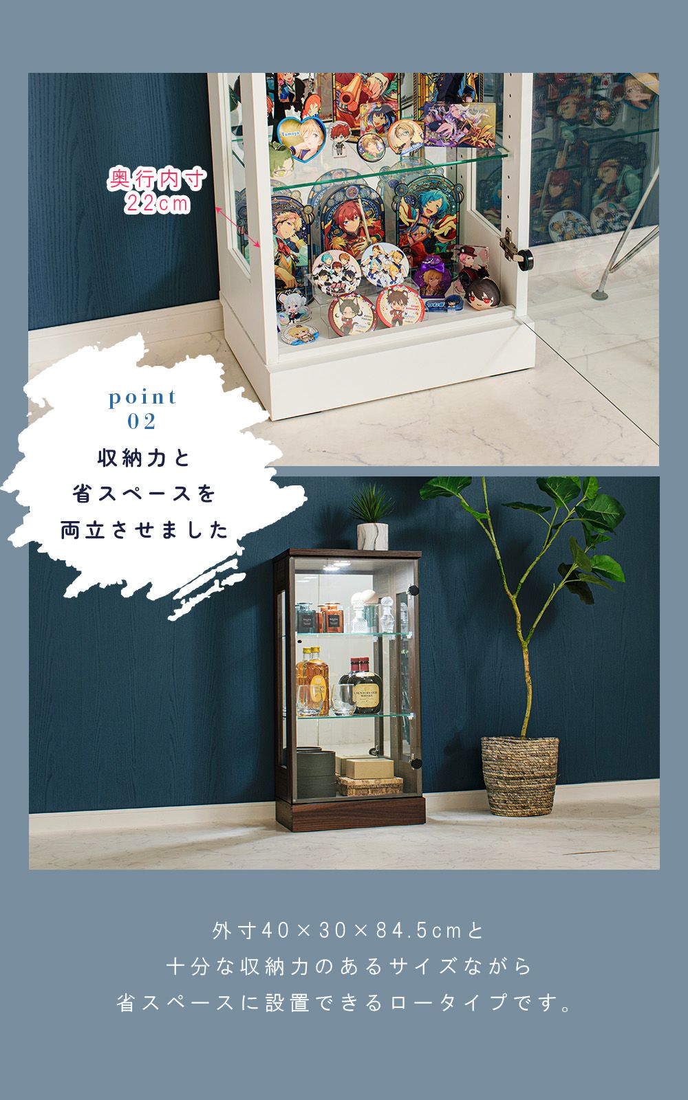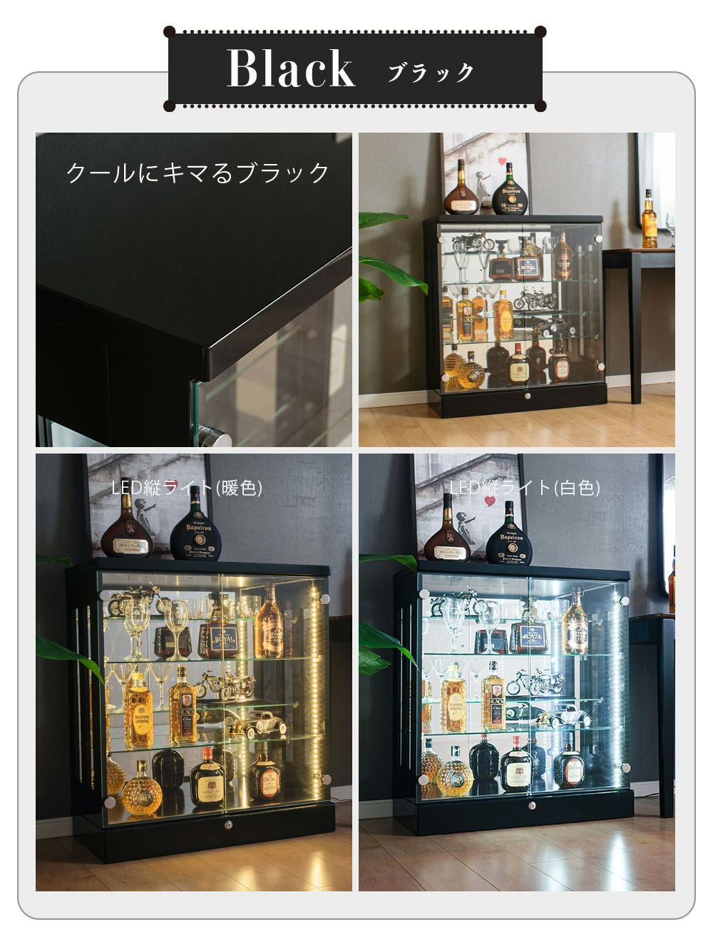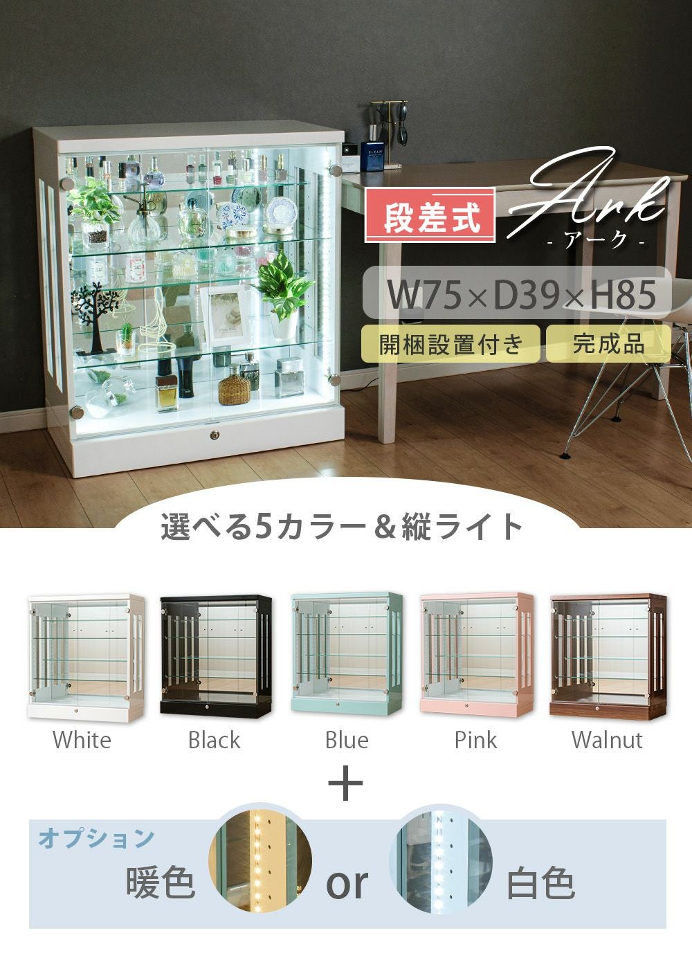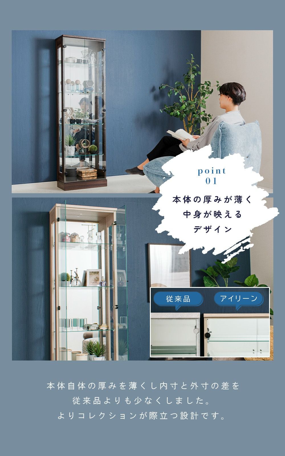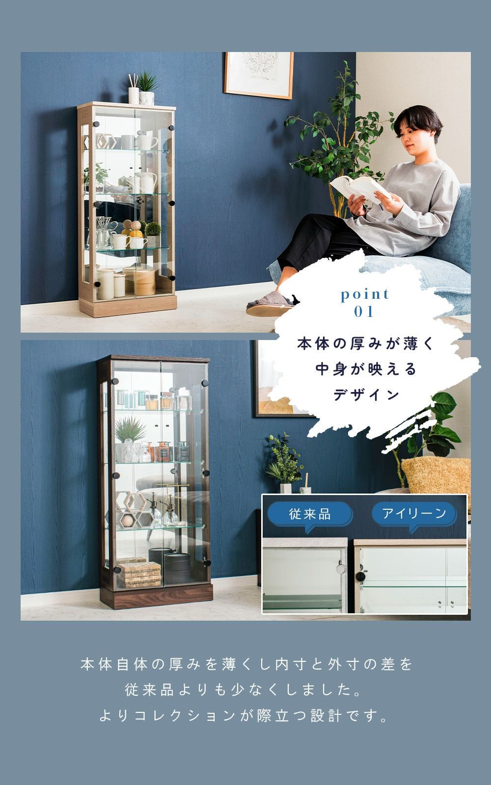 設置スペースやコレクション量に合わせて選べるサイズ展開をご用意。
