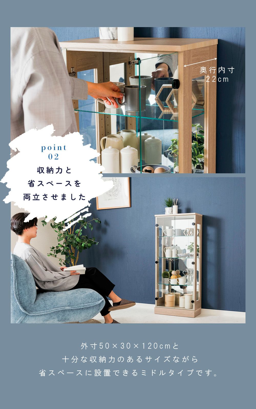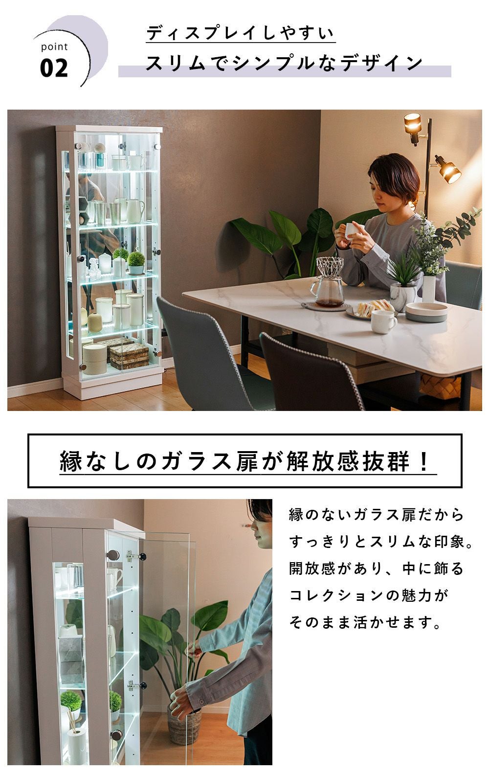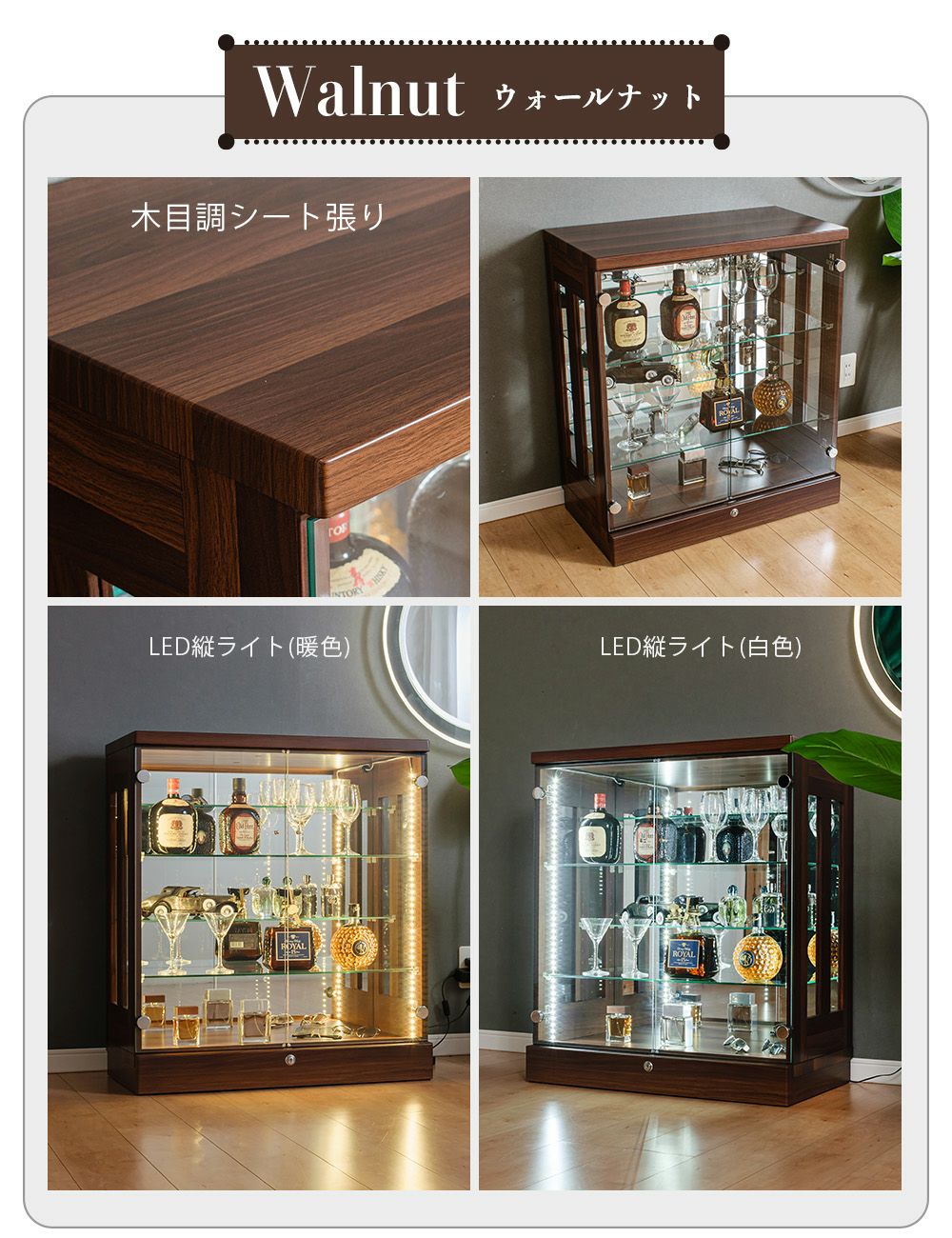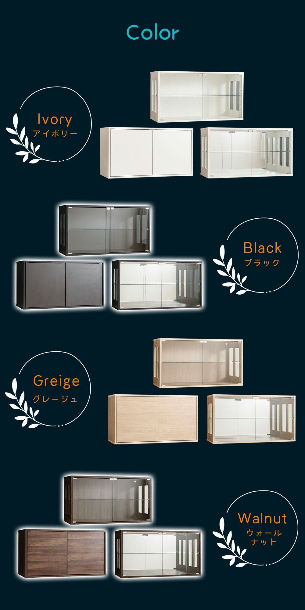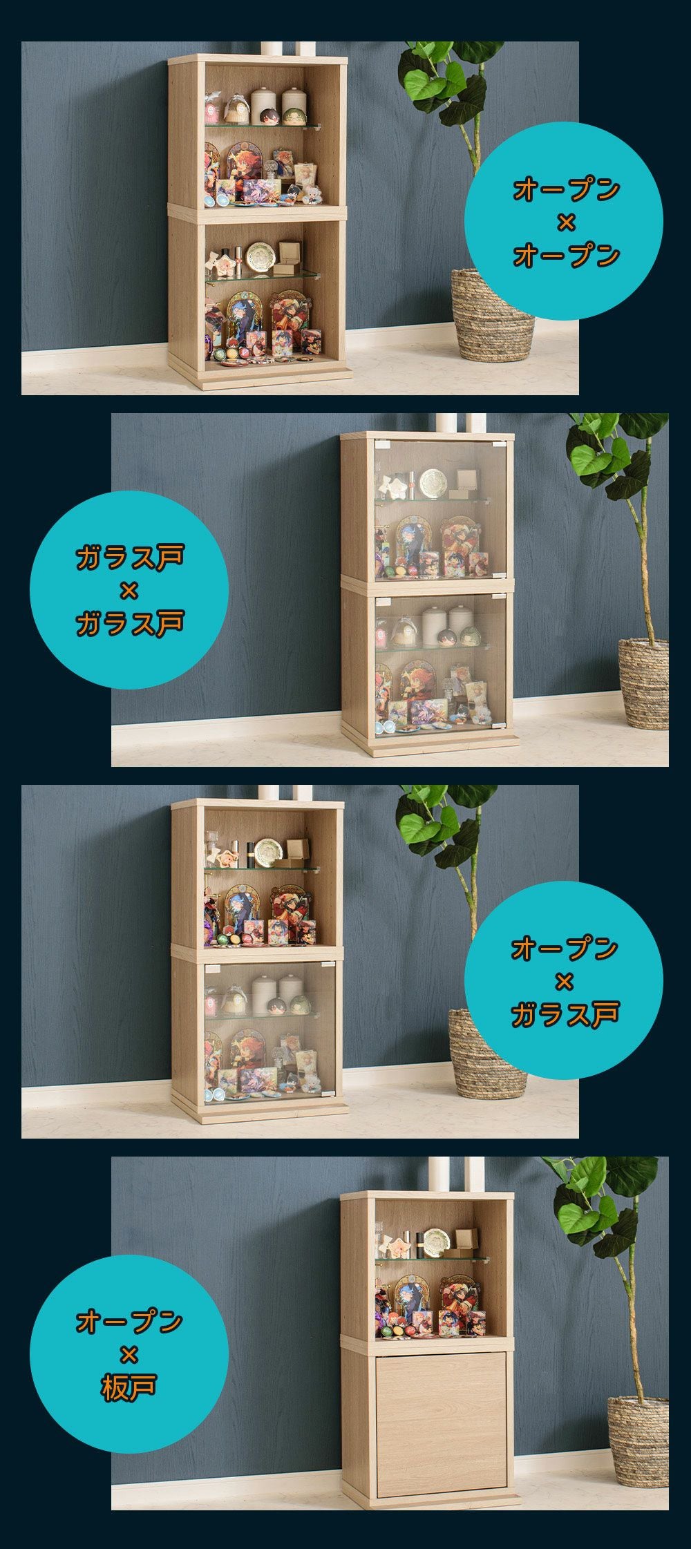 設置スペースやコレクション量に合わせて選べるサイズ展開をご用意。