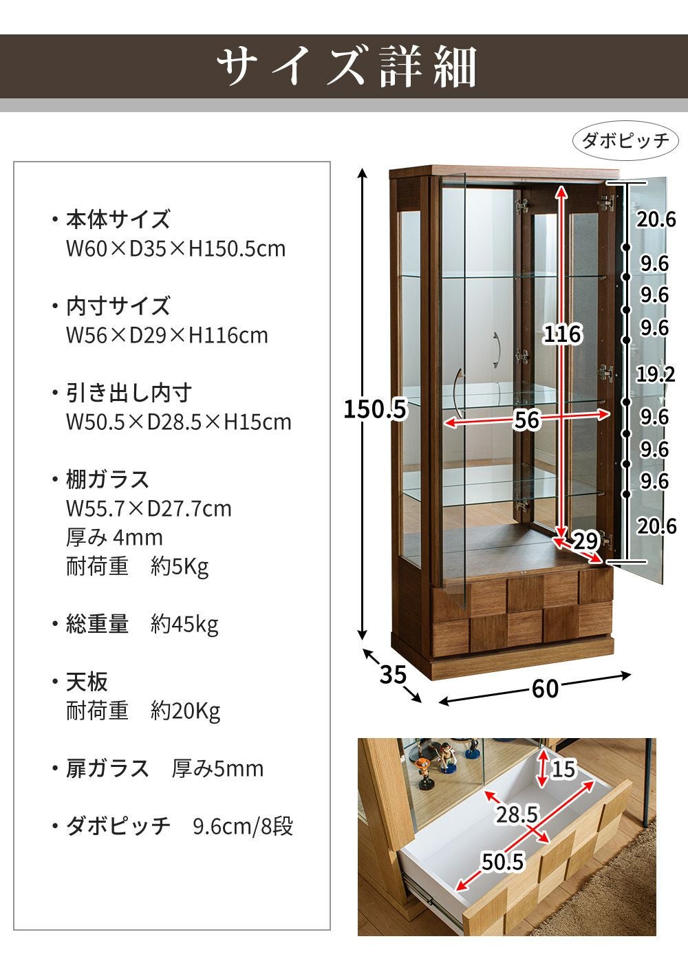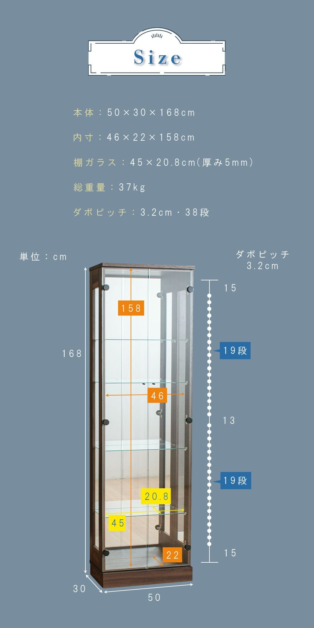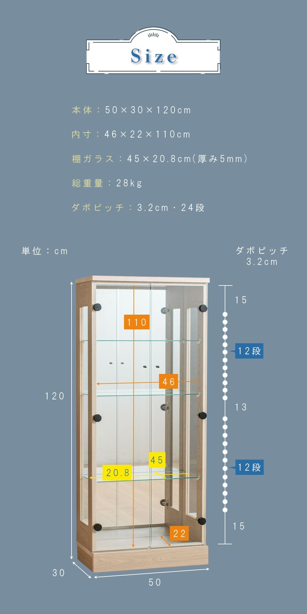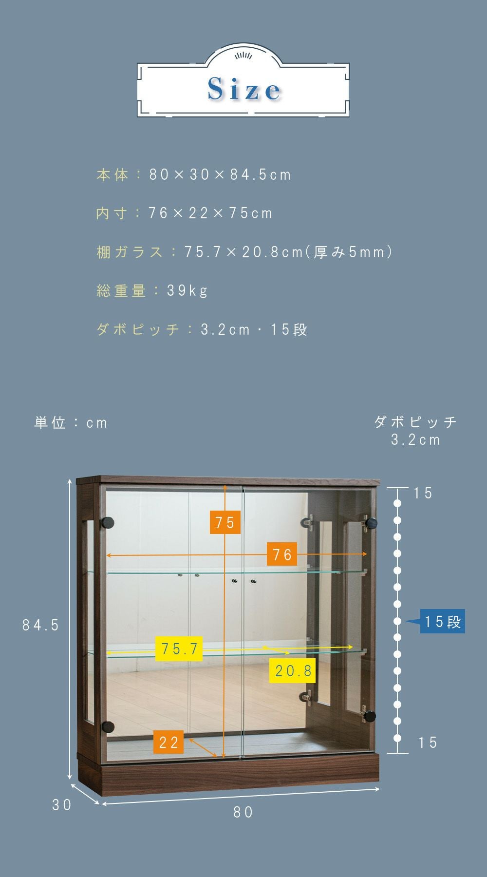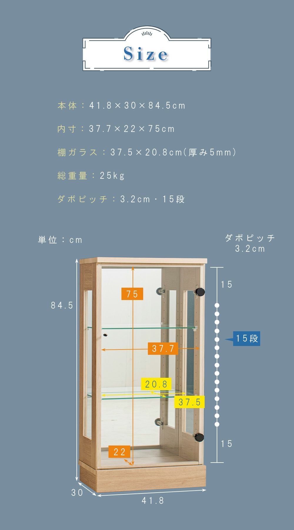 設置スペースやコレクション量に合わせて選べるサイズ展開をご用意。