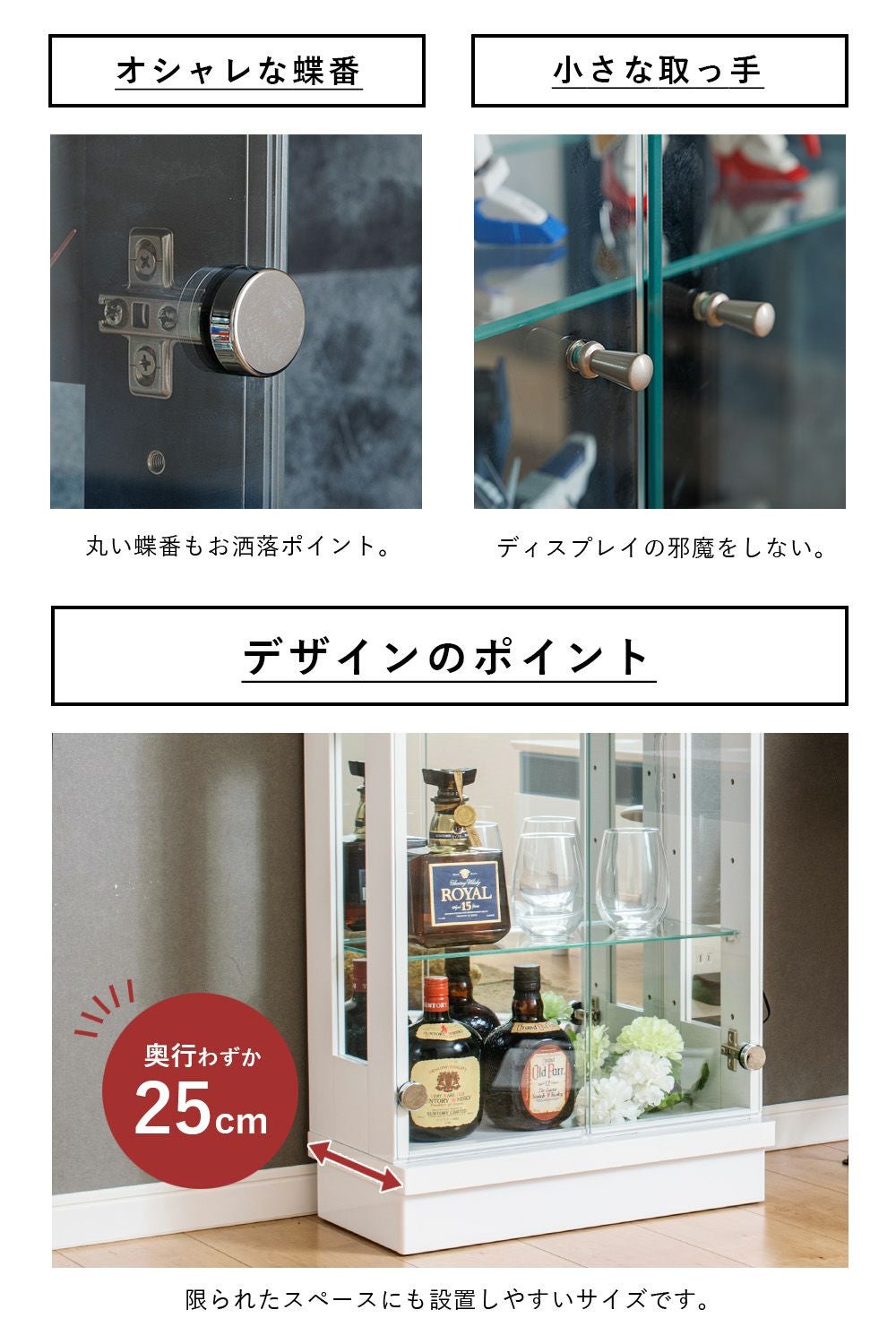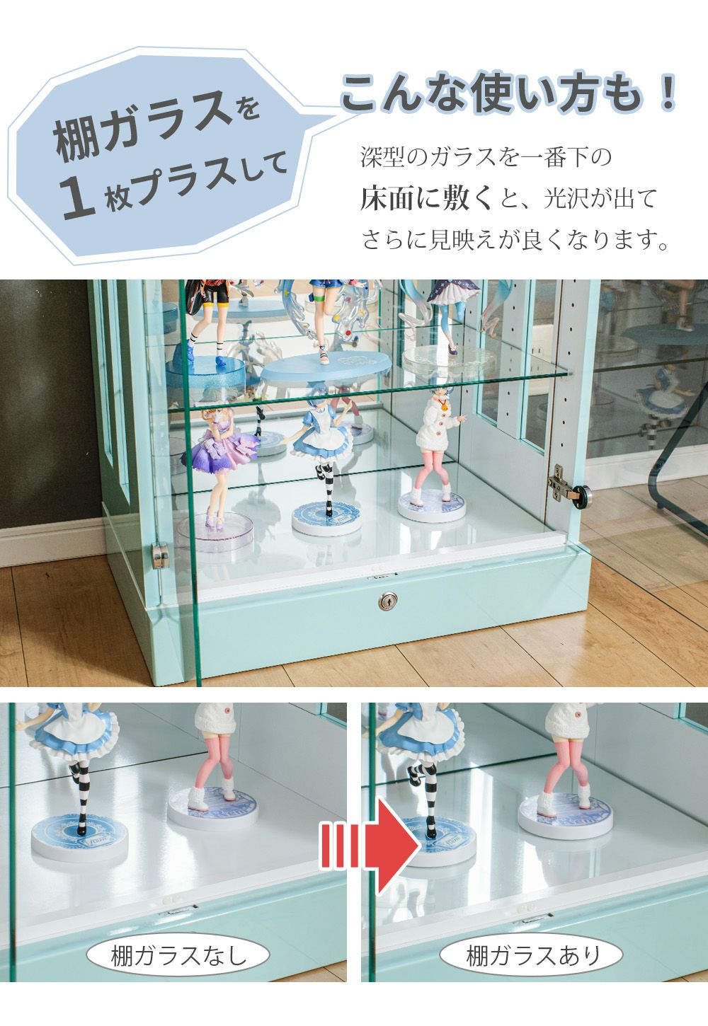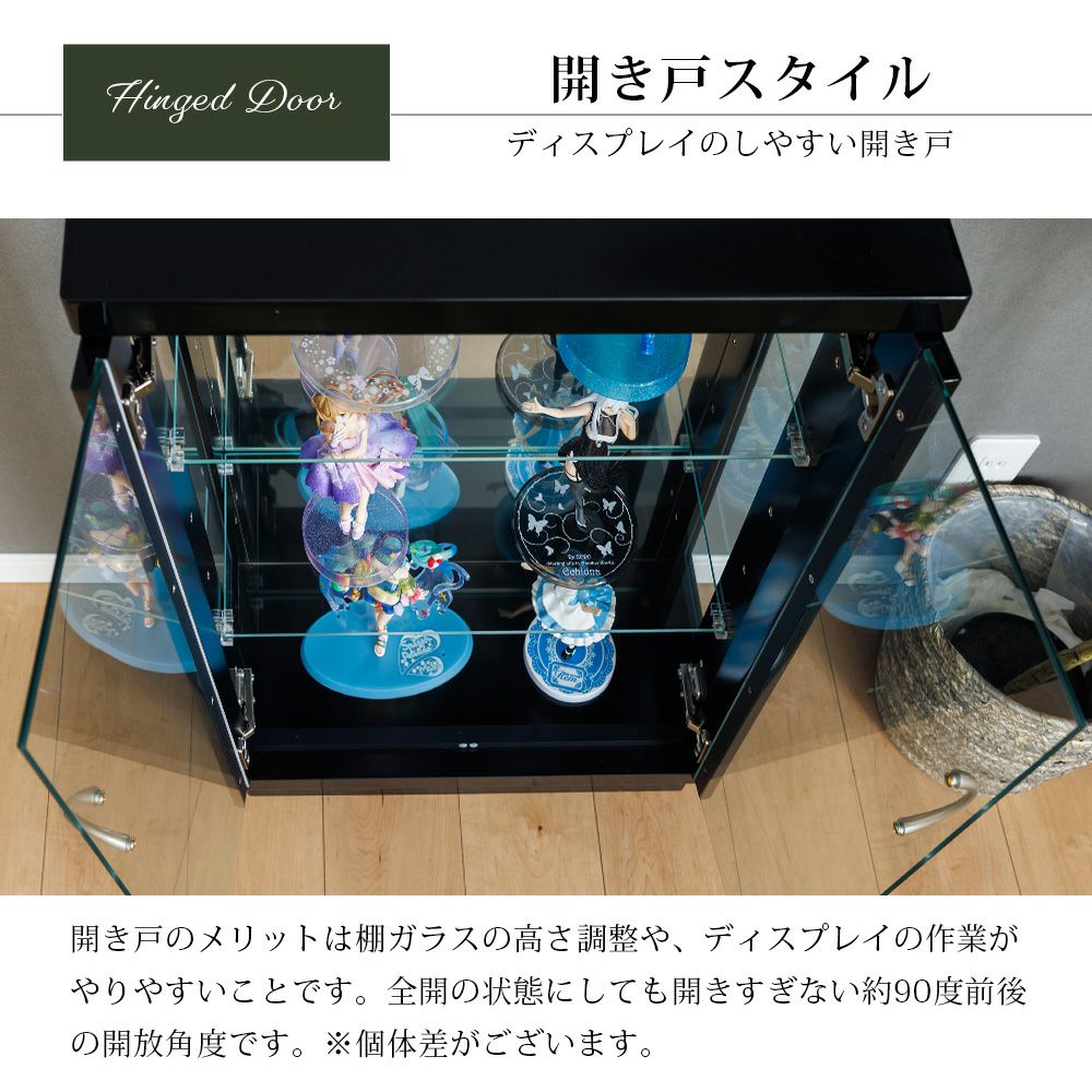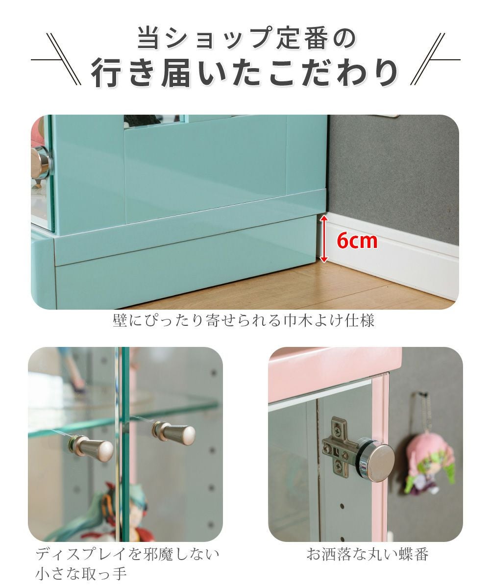小さなお子さま・ペットがいる家庭、触られたくないコレクションを飾る場合に向いている。 -