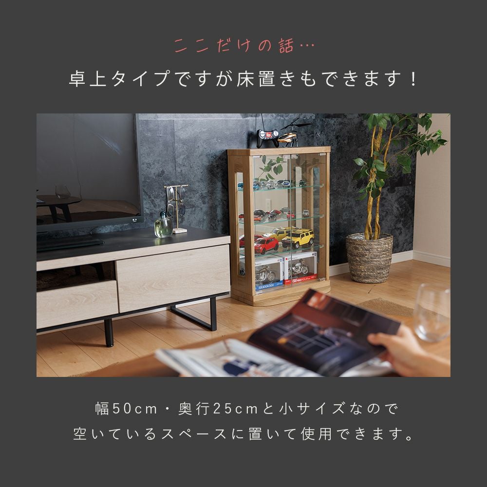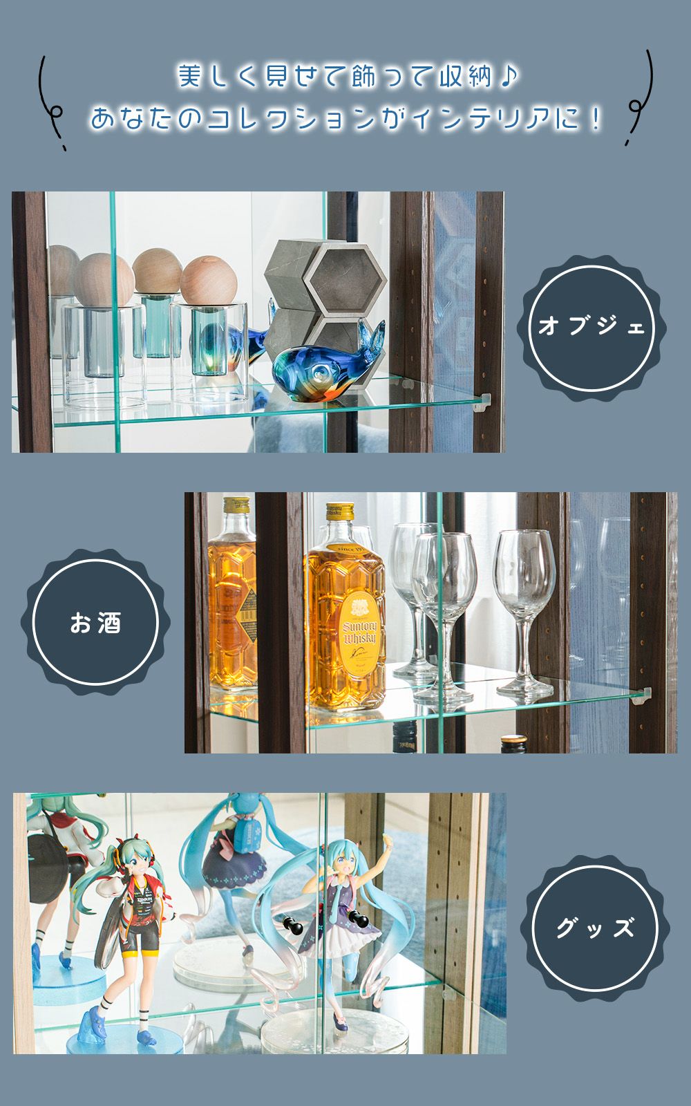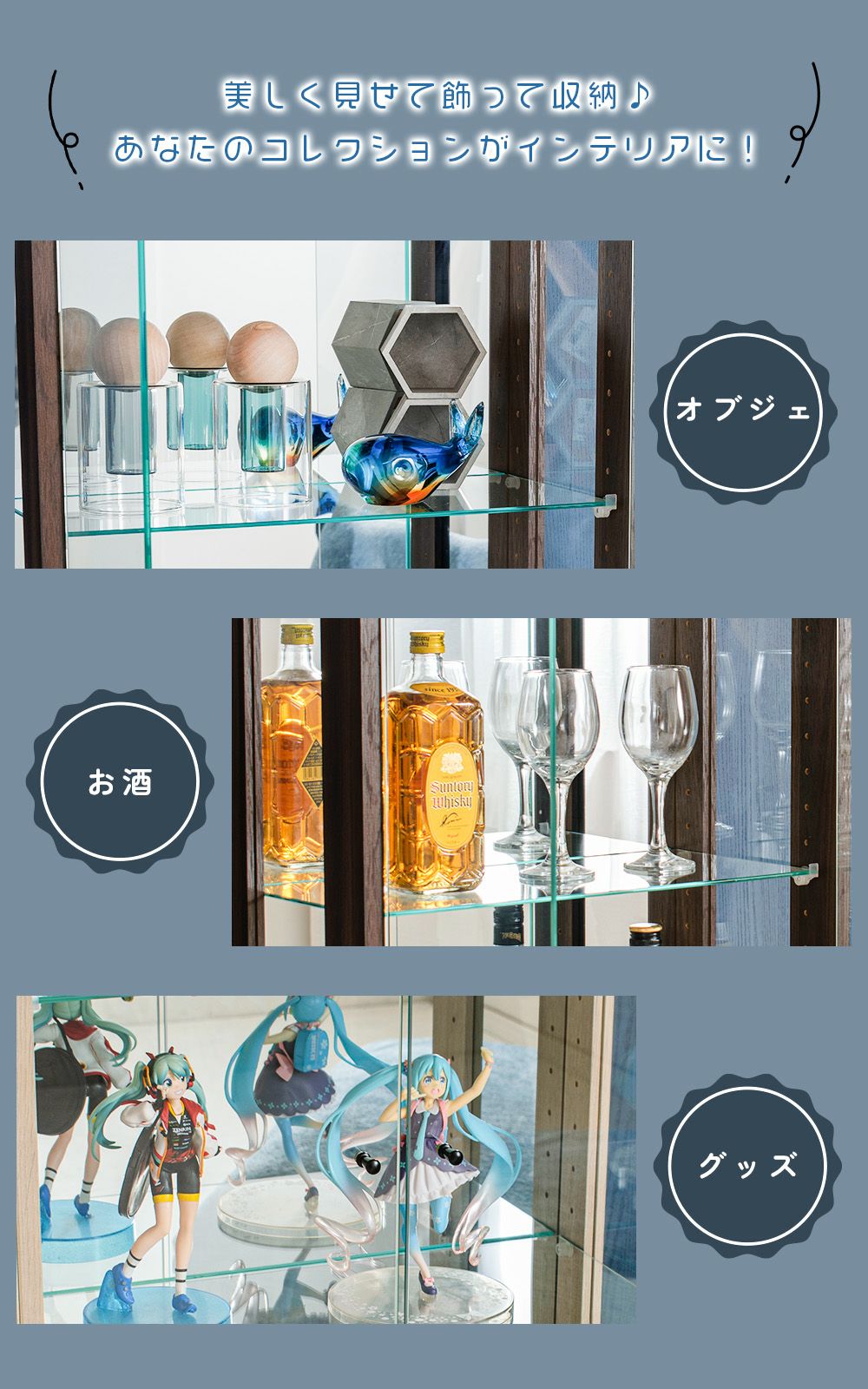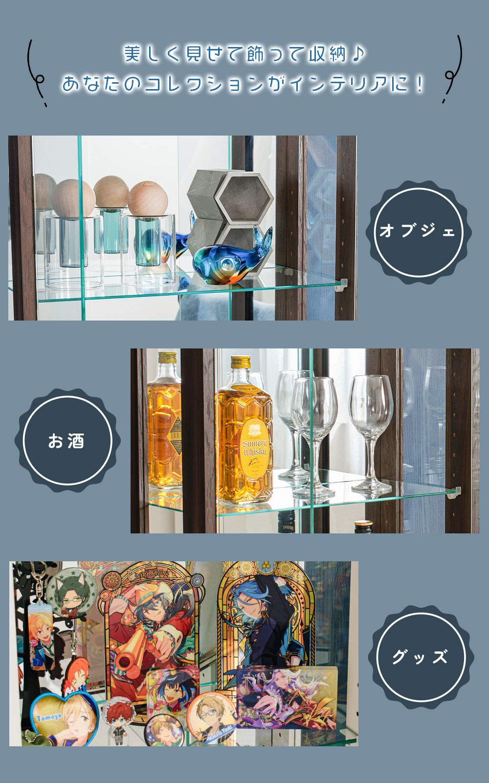 小さなお子さま・ペットがいる家庭、触られたくないコレクションを飾る場合に向いている。 -