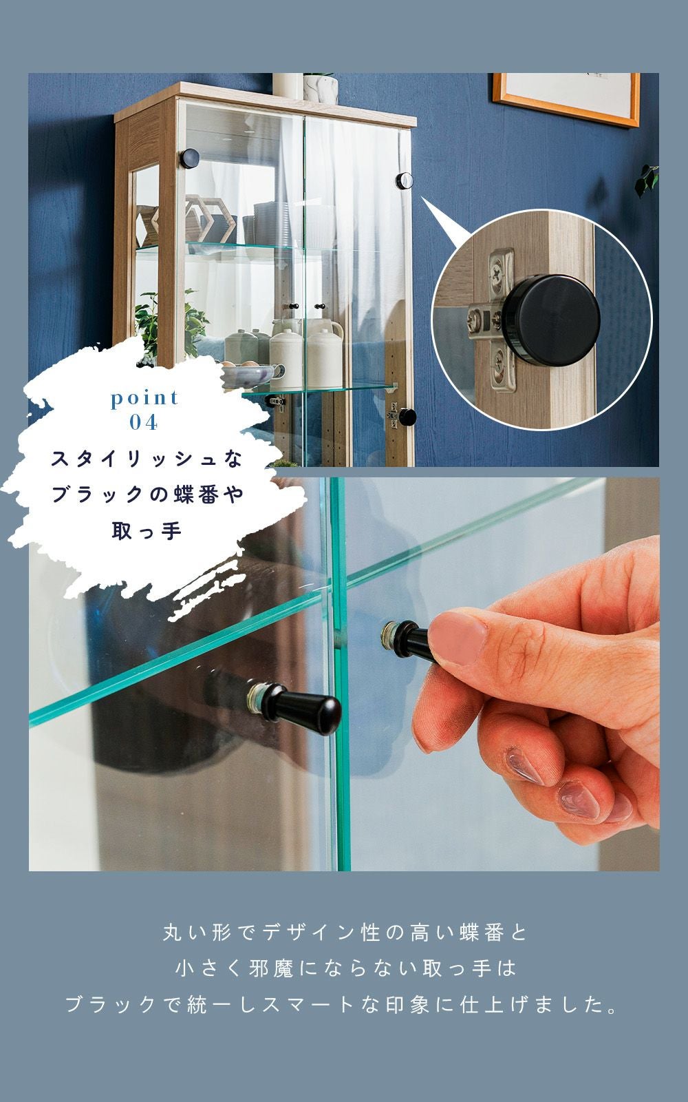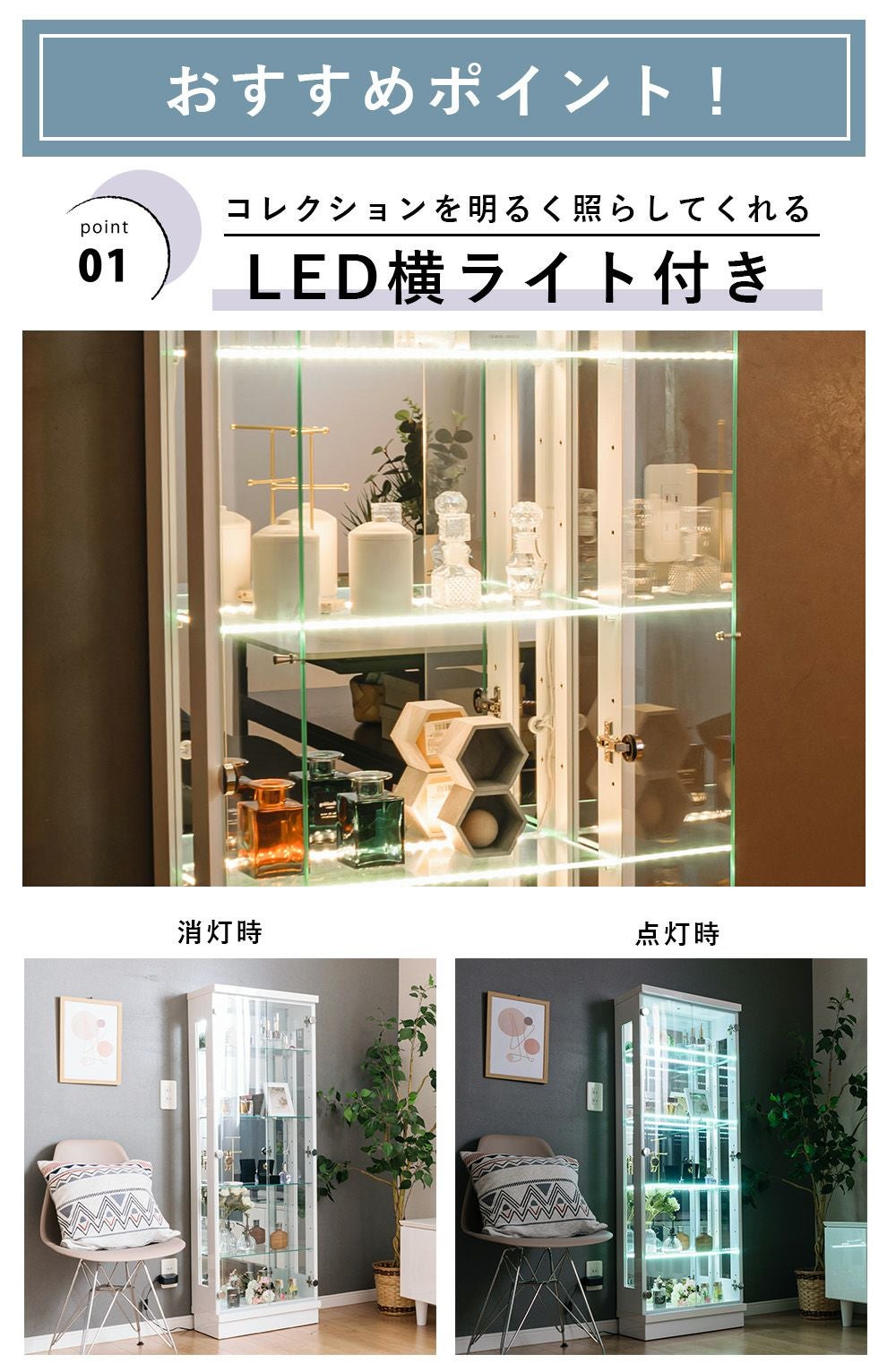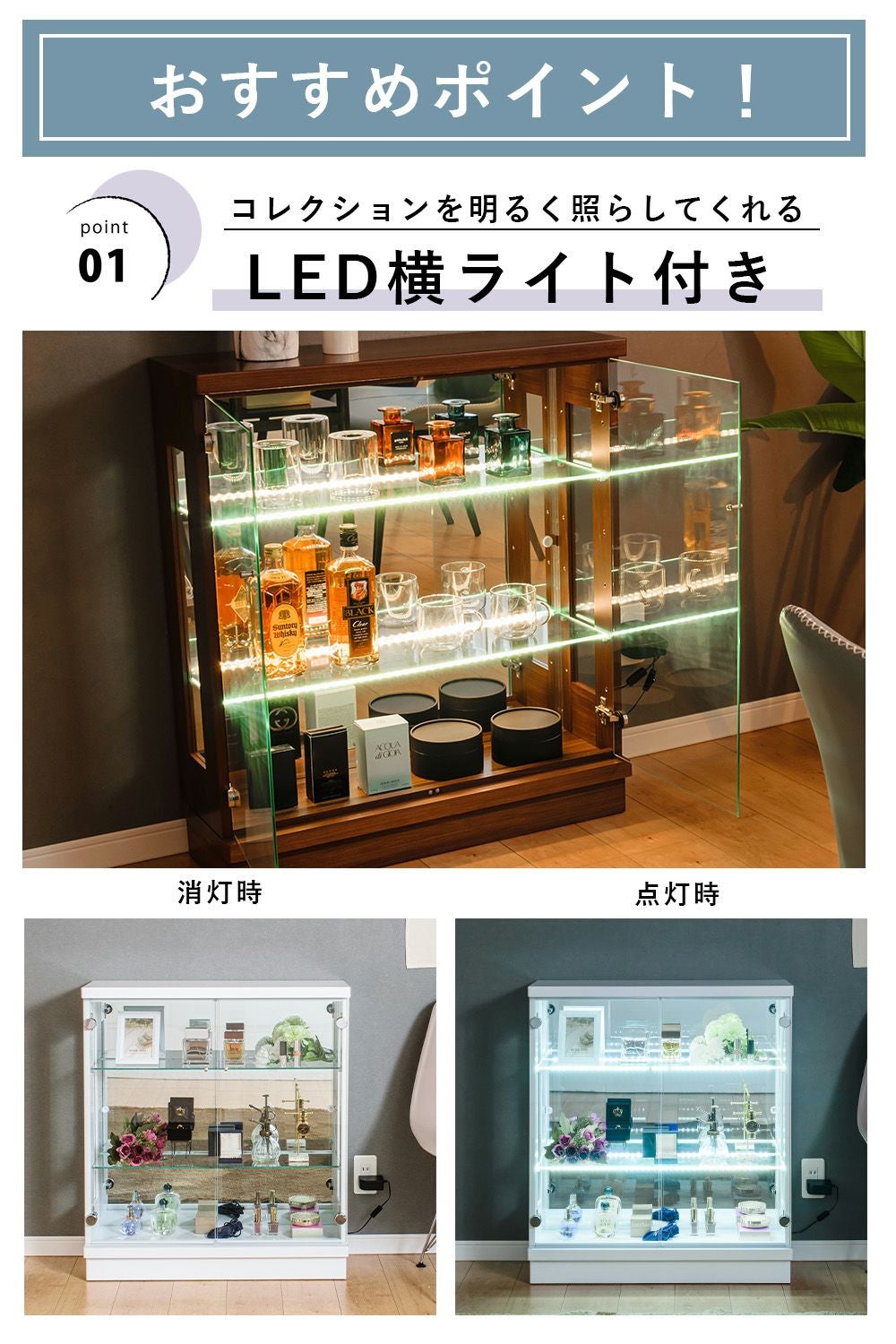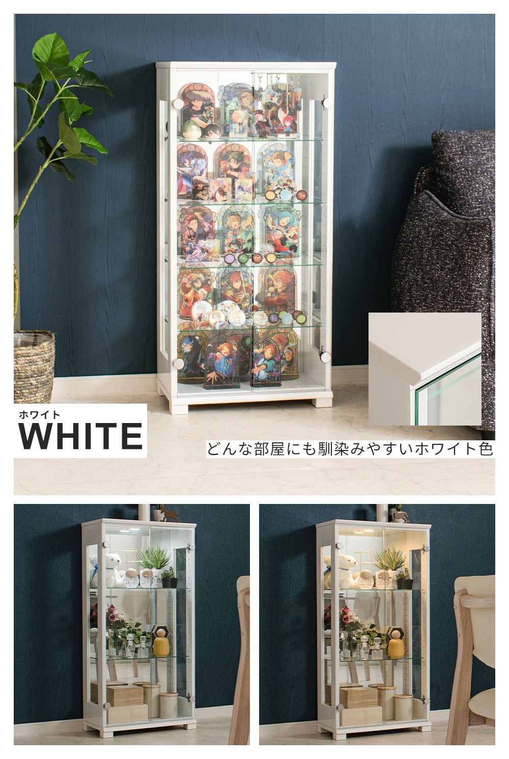 小さなお子さま・ペットがいる家庭、触られたくないコレクションを飾る場合に向いている。 -