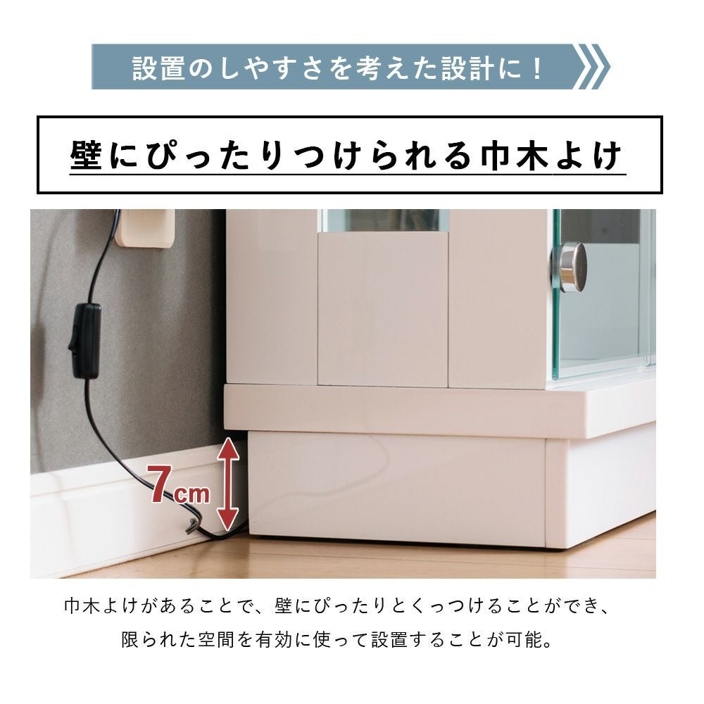 組立不要(完成品)で届いたその日から使え、ガラス扉仕様で日常の汚れ対策にも。