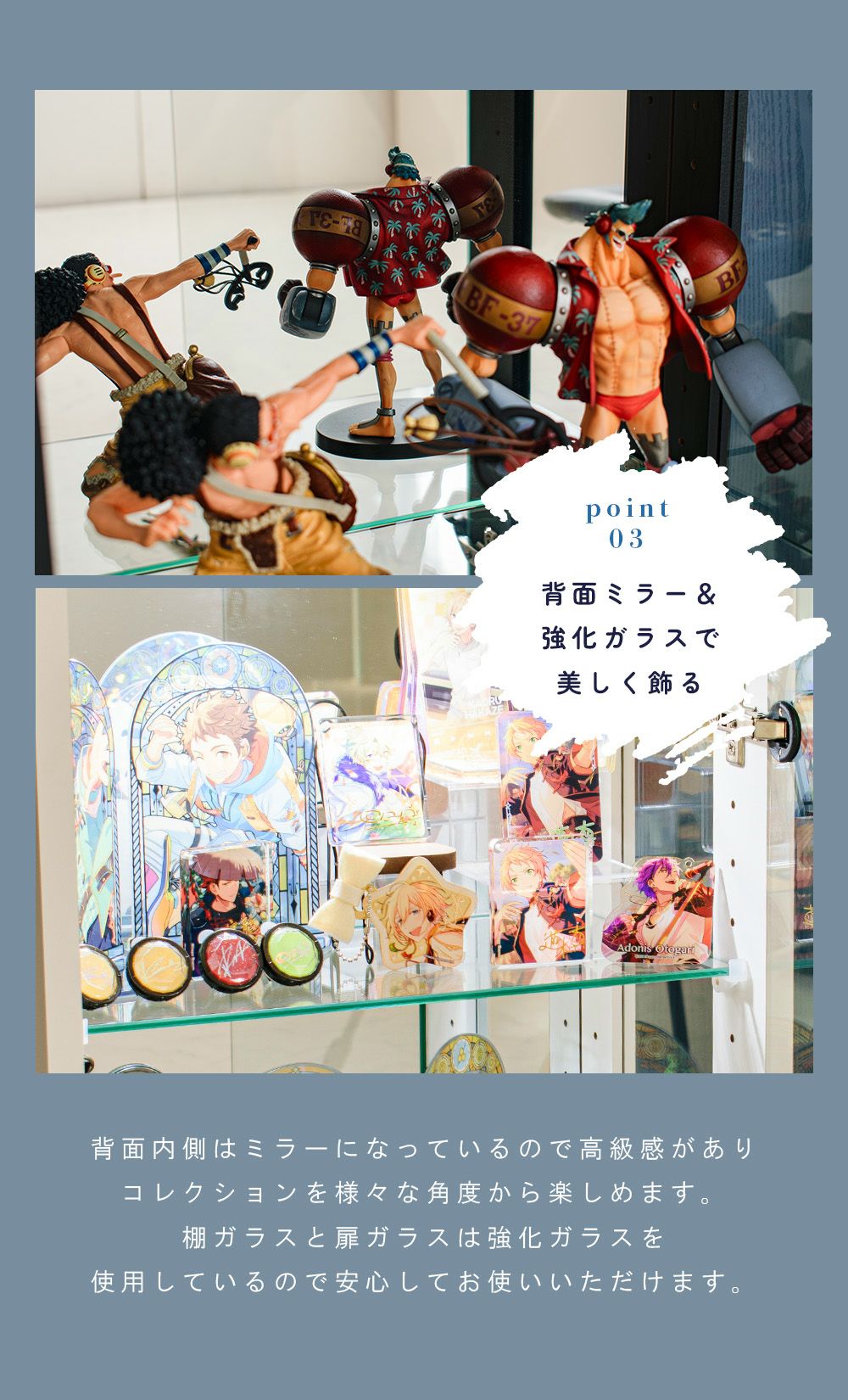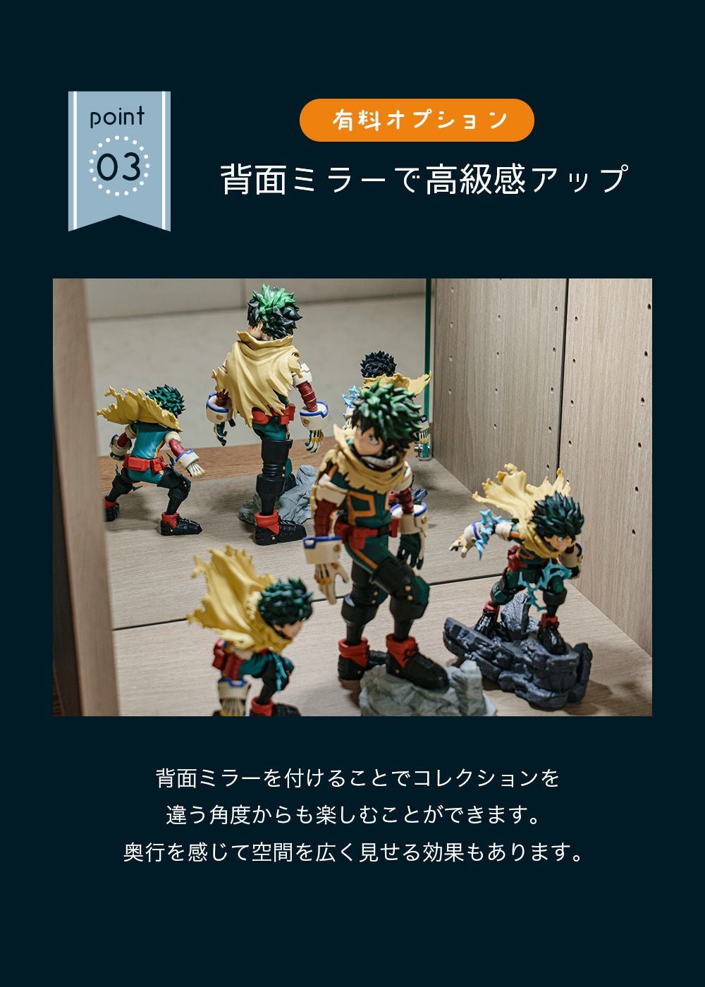 3.「飾るだけで、ワンランク上の展示感」背面ミラー付きコレクションケース