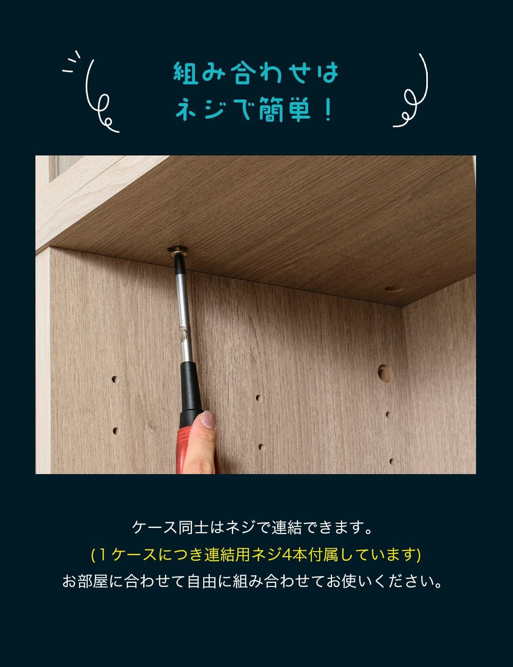 - 安心:鍵付き・L型ダボなどで転倒・ズレ対策。
