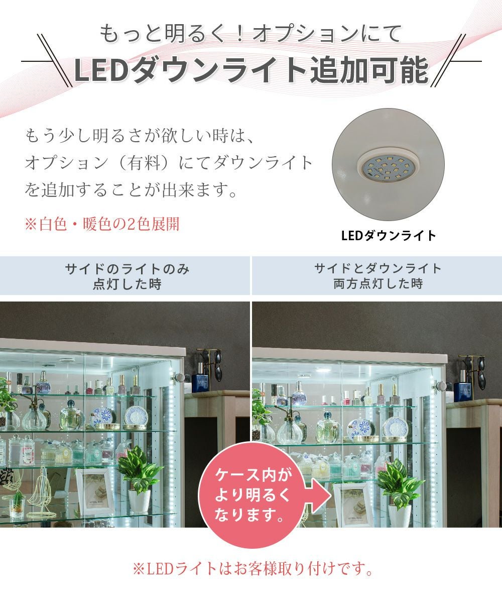 LEDライトを取り付けることで、影になりやすいケース内部も明るく照らします。