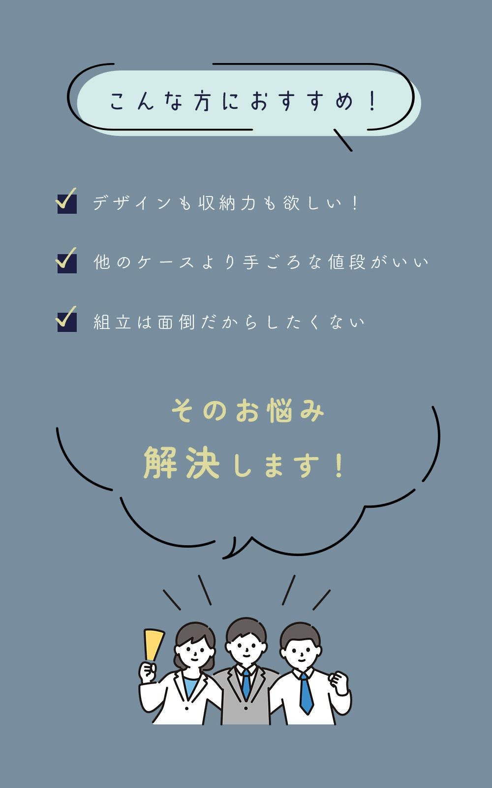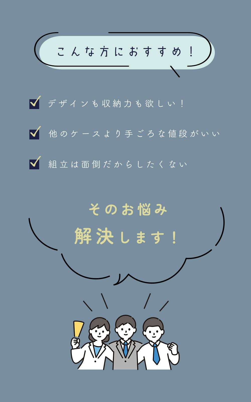 組立や移動の負担がなく、女性の方や一人暮らしの方にも安心です。
