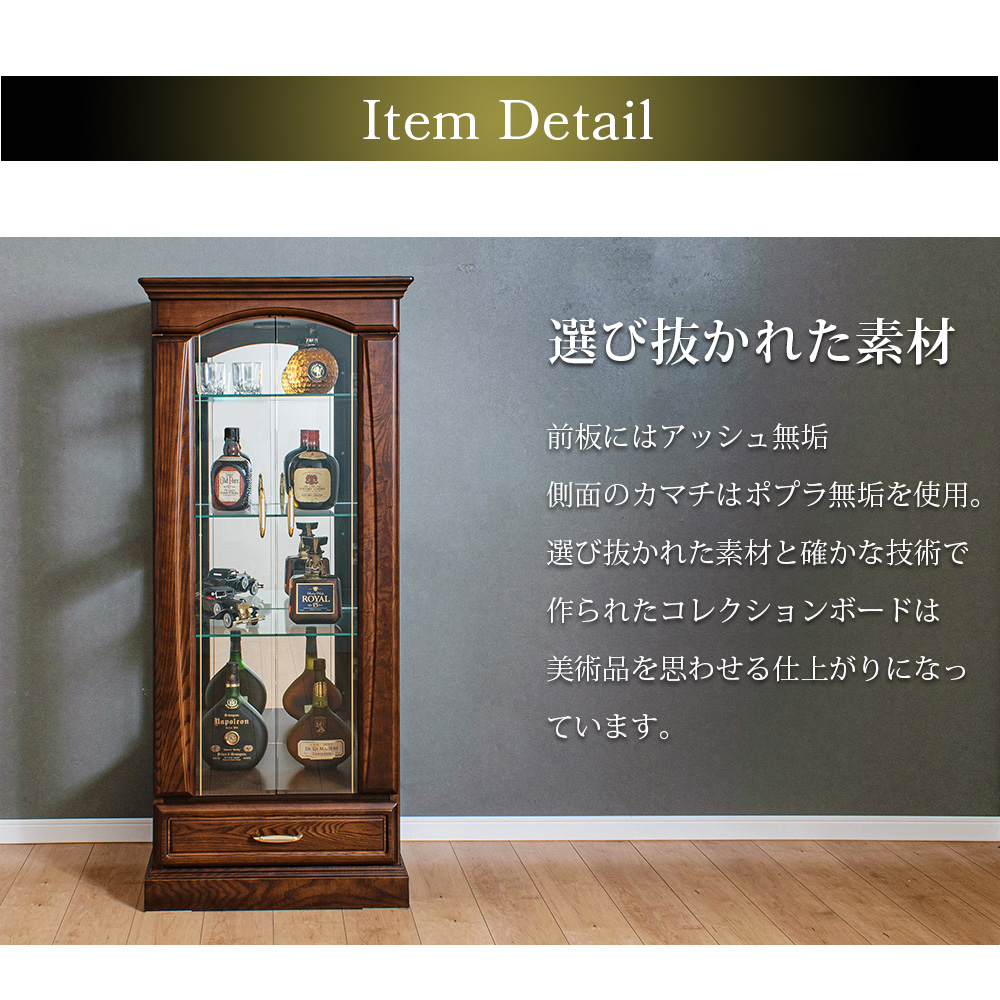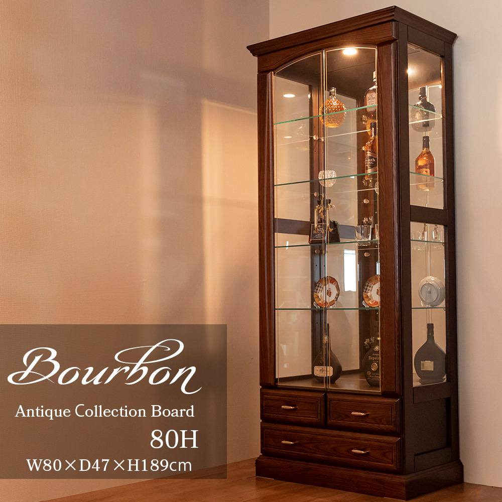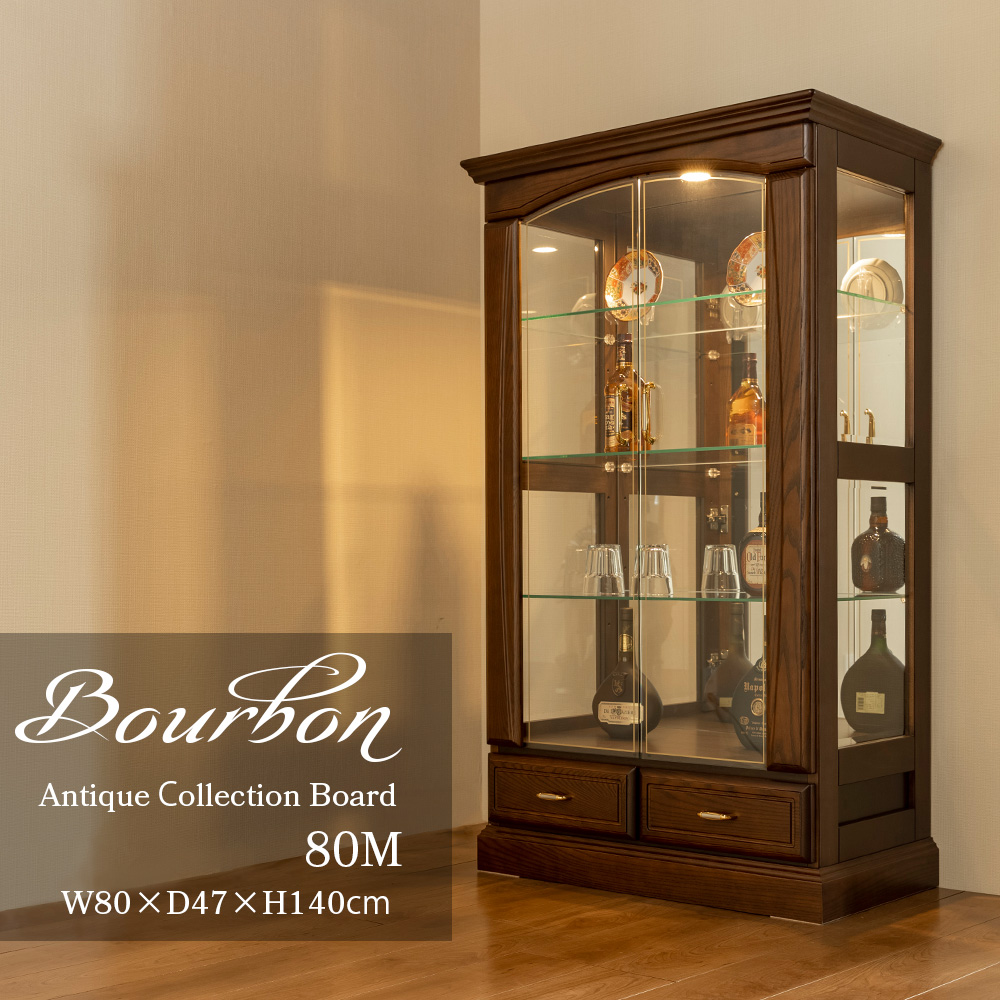【開梱設置付き / 完成品】 コレクションボード アンティーク ガラスショーケース ディスプレイ ガラス 棚 ウォールナット フィギュア ウィスキー 日本製 【5%OFF / 期間限定】 コレクションケース LED 木製 幅60cm ミドルタイプ コレクションボード ガラスショーケース 完成品 ショーケース 高級 キュリオケース 無垢 ガラス棚 ガラス 棚 収納 ウィスキー グラス 骨董品 国産 [バーボン]