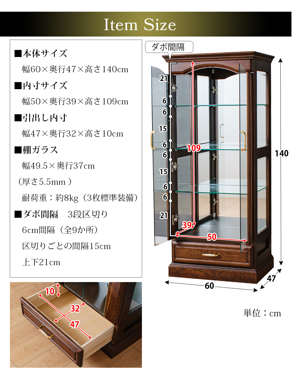 • 引出し:幅47×奥行32×高さ10cm