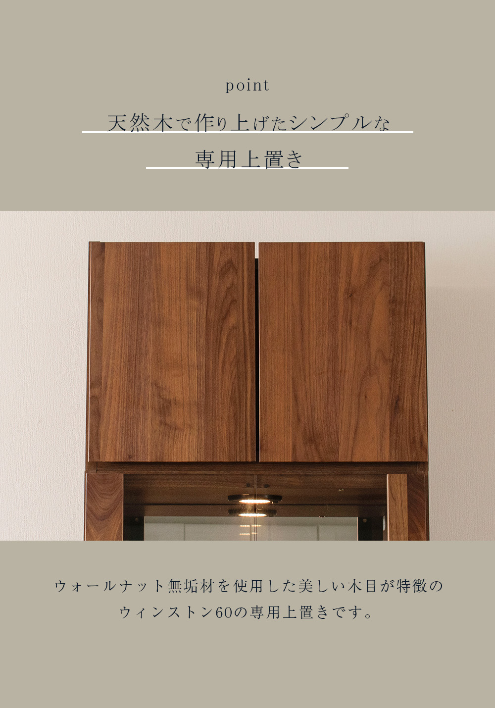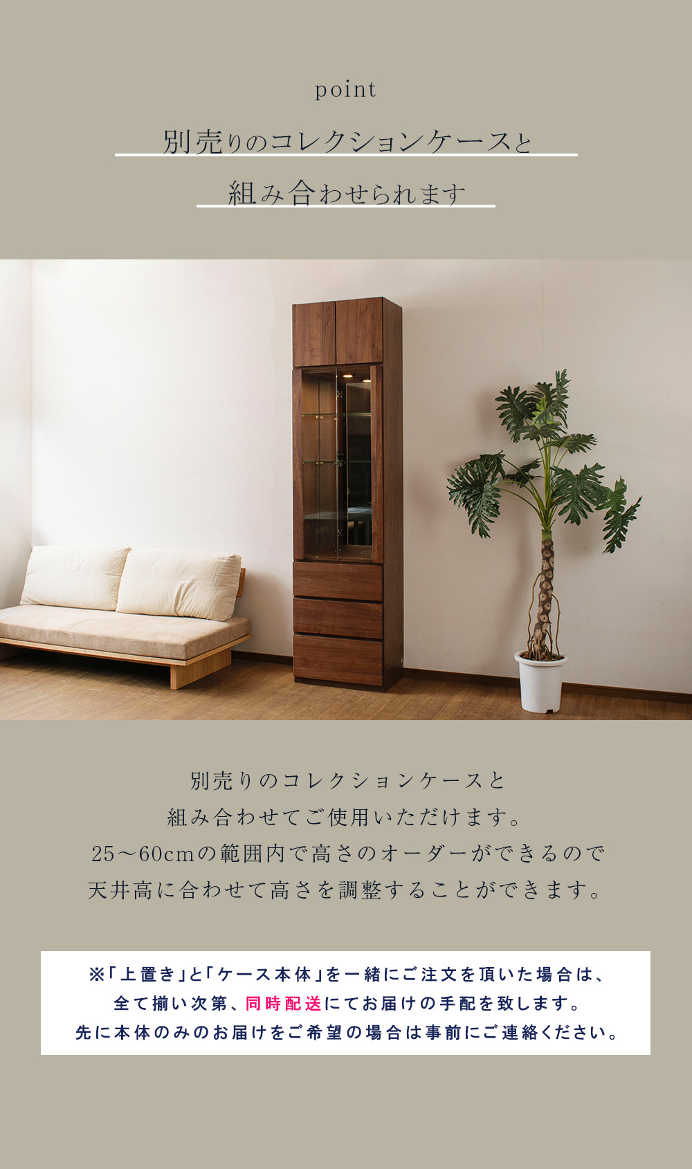 • ウィンストンシリーズ専用の上置き棚(幅60cm) で、同シリーズのコレクションケースと組み合わせて使えます