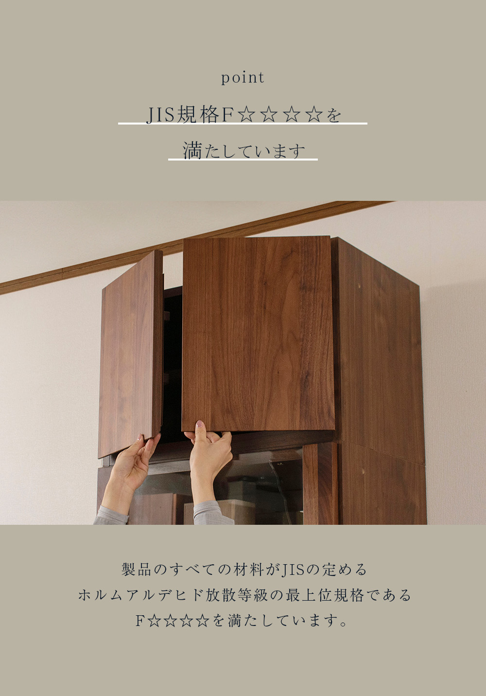 • F☆☆☆☆(低ホルムアルデヒド)クリアで安心