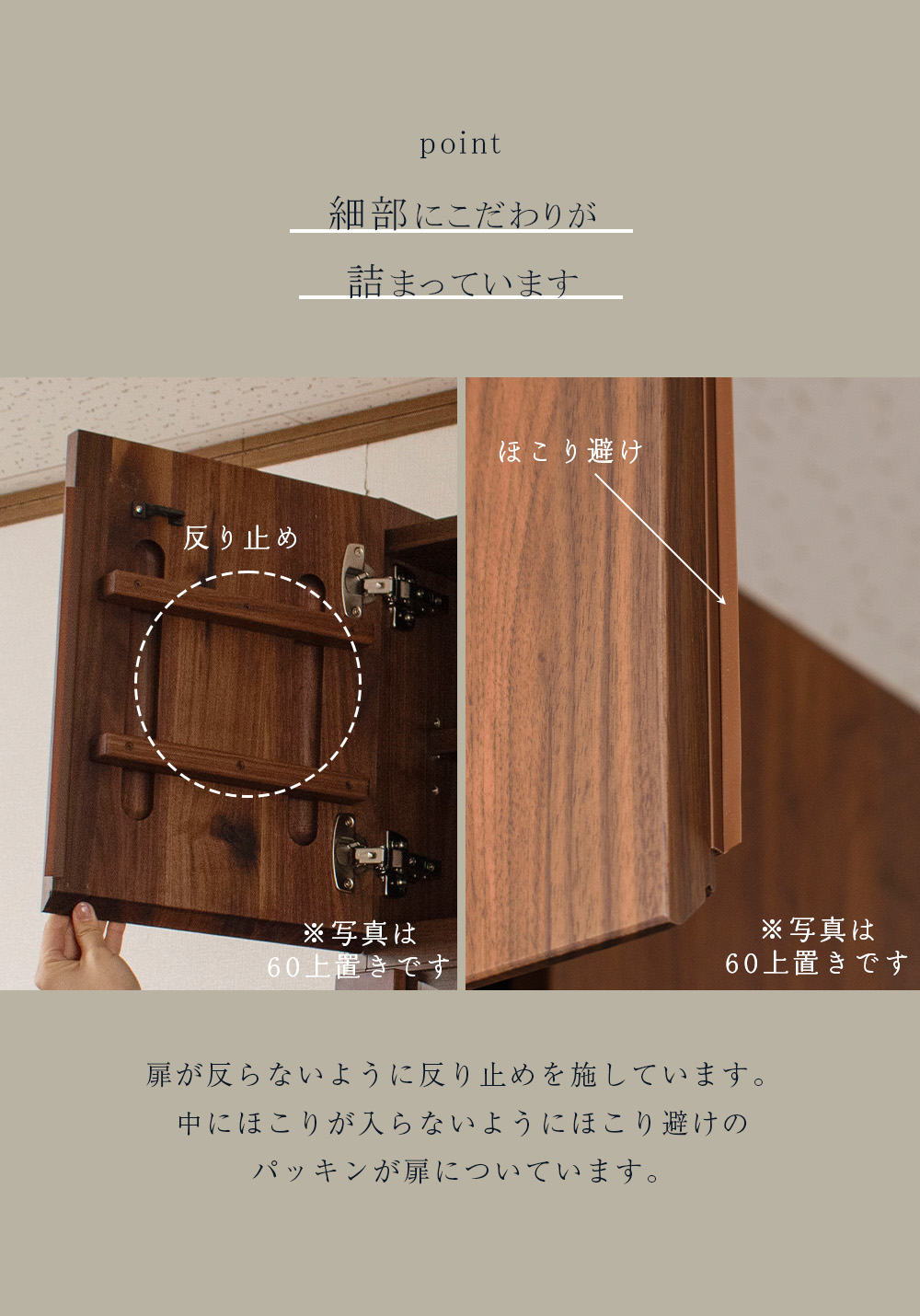 • 前板・扉・枠:ウォールナット無垢材