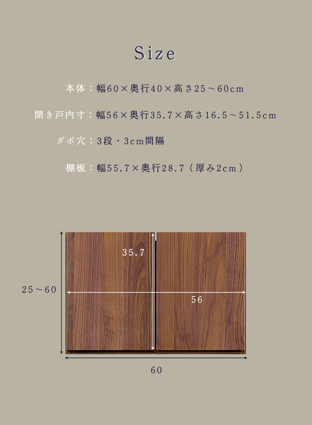 • 本体:幅60×奥行40×高さ25~60cm