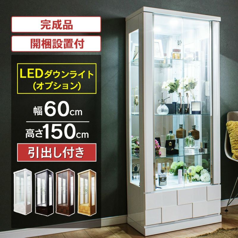 【オープン記念★10%OFF!~12/28(日)まで】コレクションケース コレクションボード ガラスショーケース ハイタイプ 幅60cm 引き出し付 完成品 ショーケース キュリオケース コレクションラック 高級 [クロノス]