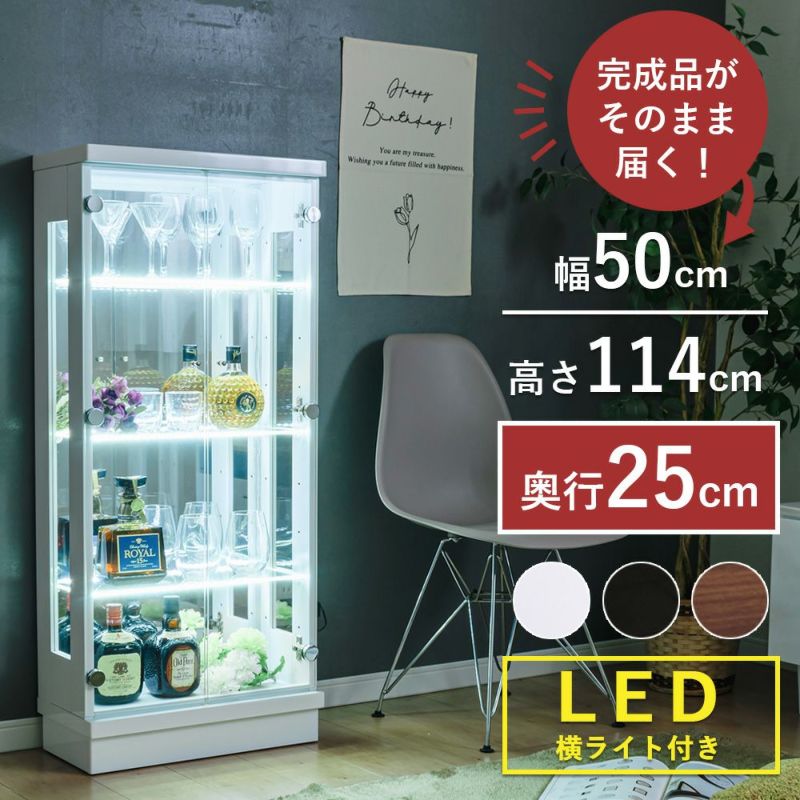 【オープン記念★10%OFF!~12/28(日)まで】コレクションケース led 横ライト 幅50 奥行25 ミドルタイプ 薄型 コレクションボード ガラスケース キュリオケース 収納ケース ガラス 棚 ガラス棚 収納 キャビネット ガンプラ フィギュア オフィス [スペクトル]