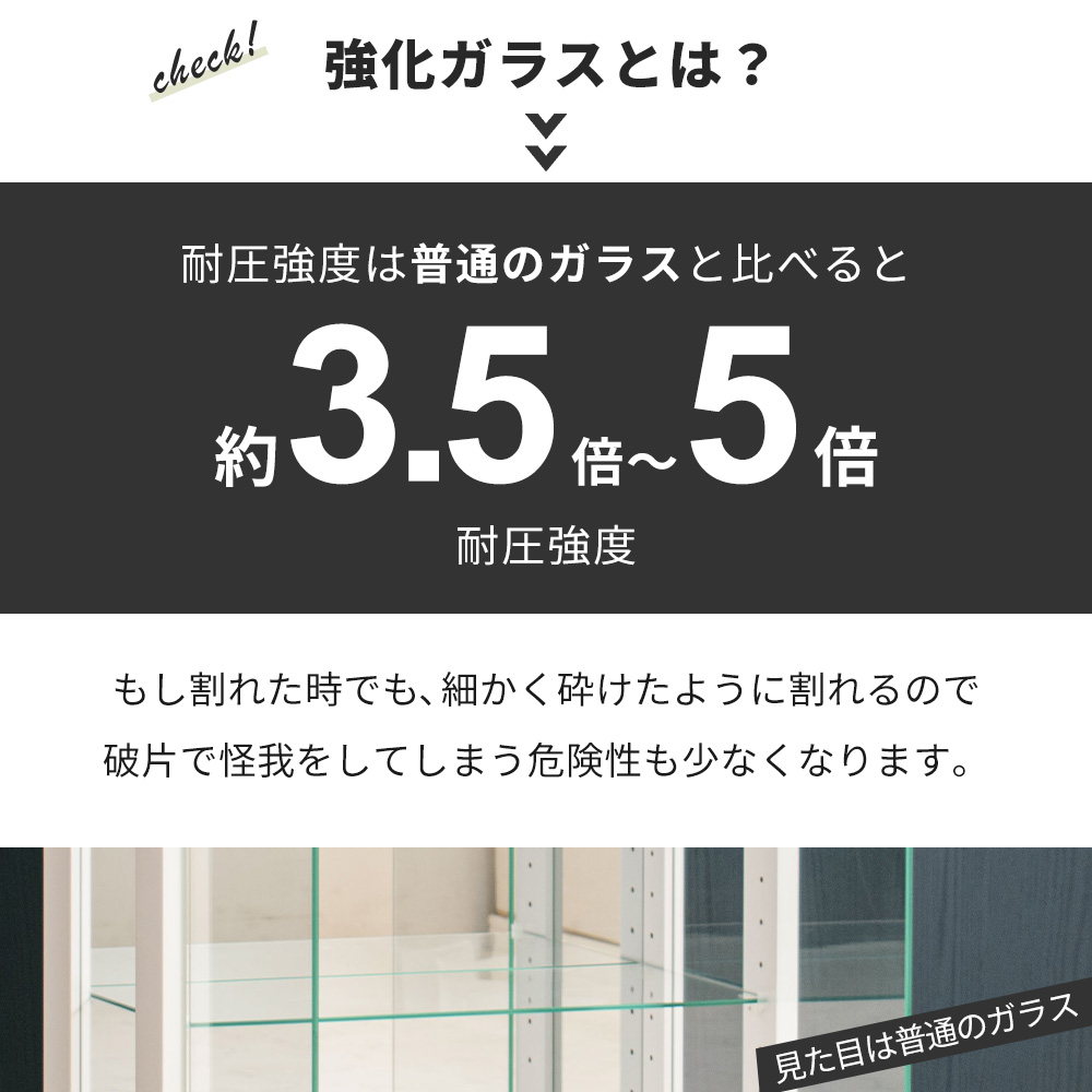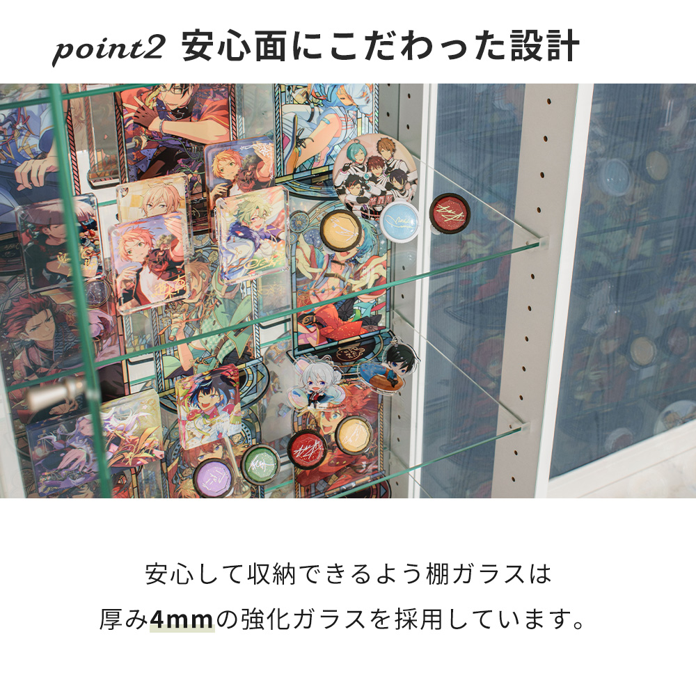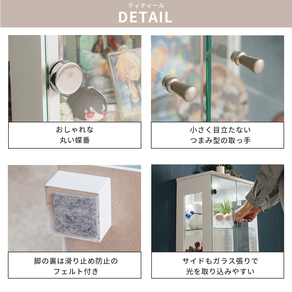• 扉は5mm強化ガラスで、透明感を保ちながら安心感も確保でき、コレクションを“守って見せる”ショーケース仕様