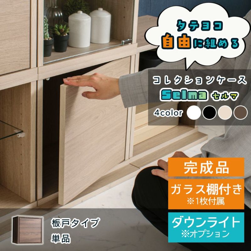 幅40 奥行30cm 高さ42cm 棚ガラス 棚板 ライト LED 完成品 増やせる収納 カスタム ひな壇 ディスプレイ 展示ケース 白 黒 グレージュ ウォールナット ホワイト ブラック アクスタ 推し活 【オープン記念★10%OFF!~12/28(日)まで】コレクションケース 幅42cm 【板戸タイプ】 フィギュアケース オタ活 高品質 コレクション ボックス 卓上 積み重ね 扉付き 透明 ガラス コレクションボックス 収納 段差式 [セルマ]