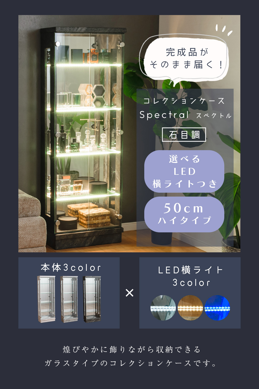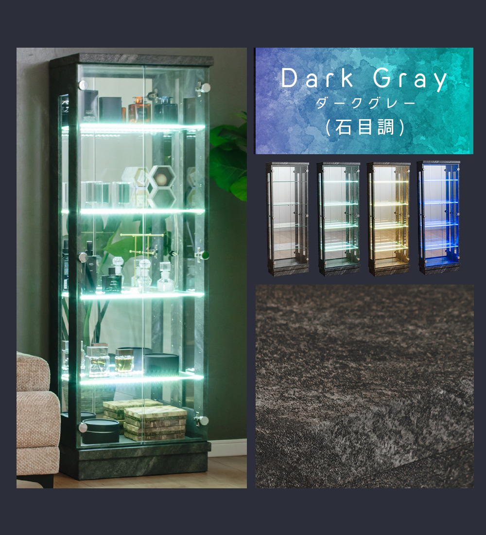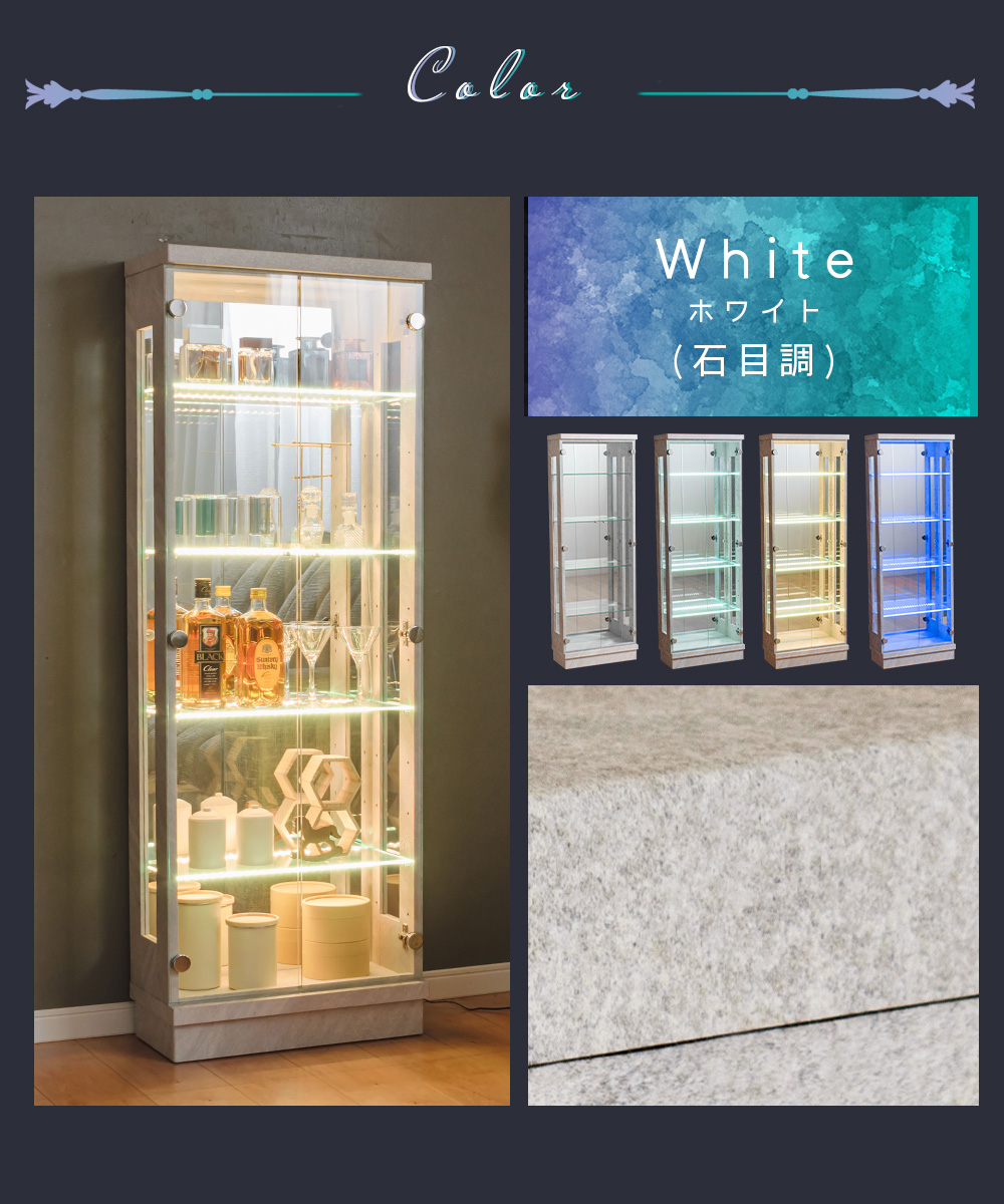 【開梱設置付き / 完成品】横ライト 照明 カラー コレクションボード キャビネット ガラス 展示用 ホワイト ブラック ウォールナット フィギュア ウィスキー bar ホスト ディスプレイ 【10%OFF / 期間限定】 石目調 コレクションケース led 横ライト 幅50 奥行25 ハイタイプ 薄型 コレクションボード ガラスケース 飾り棚 キュリオケース 収納ケース ガラス ガラス棚 キラキラ収納 ガンプラ フィギュア オフィス[スペクトル]