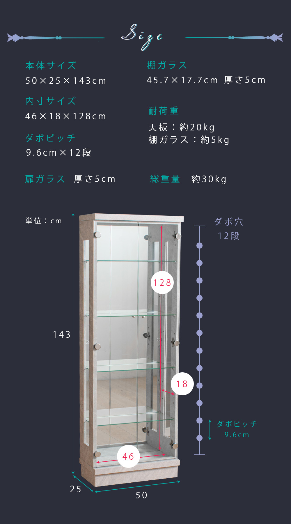 • 内寸:幅46×奥行18×高さ128cm