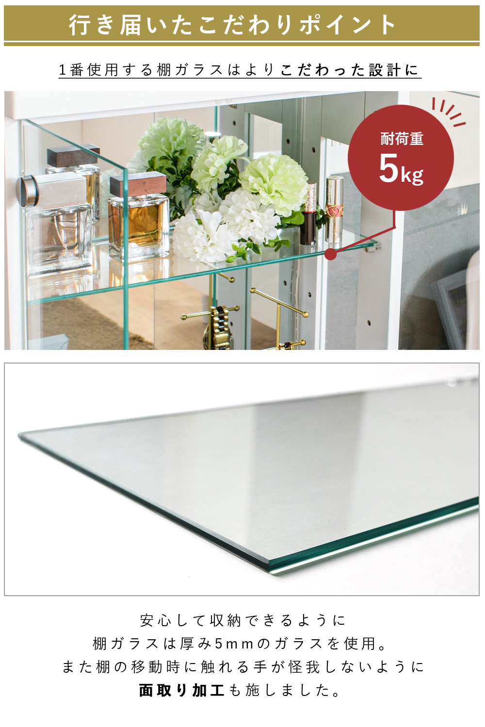 - 耐荷重:天板 20kg/ 棚ガラス 5kg
