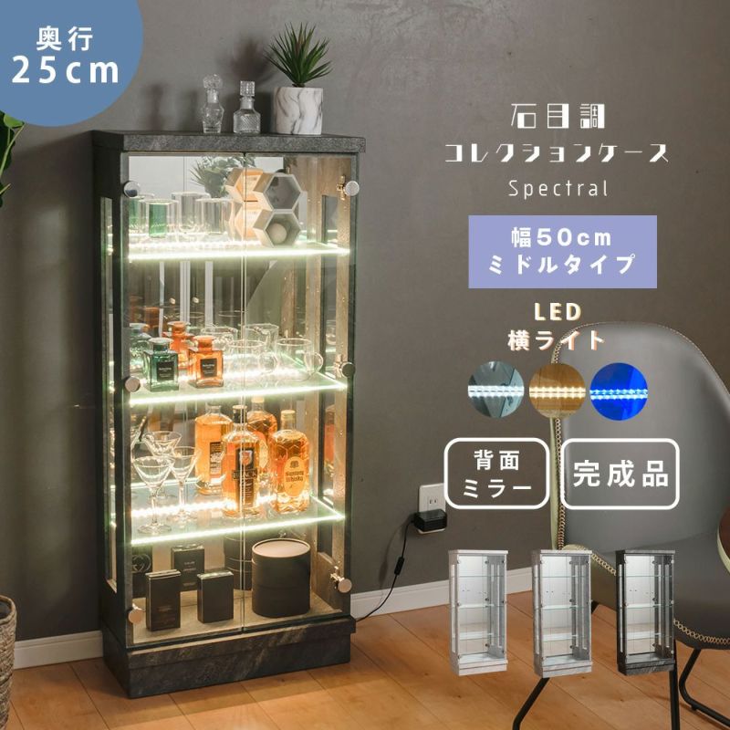 【オープン記念★半額!~12/28(日)まで】 石目調 コレクションケース led 横ライト 幅50 奥行25 ミドルタイプ 薄型 コレクションボード ガラスケース キュリオケース 収納ケース ガラス 棚 ガラス棚 収納 キャビネット ガンプラ フィギュア オフィス [スペクトル]
