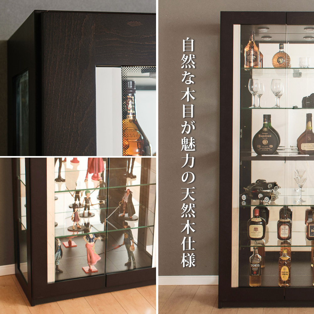 開梱設置付き 完成品 日本製 コレクションボード アンティーク ガラスショーケース ディスプレイ ガラス 棚 ダークブラウン フィギュア ウィスキー 【5%OFF / 期間限定】 国産 コレクションケース 木製 LED ライト付 国産 幅60cm 天然木 ハイタイプ コレクションボード ガラスケース 完成品 ショーケース 高級 キュリオケース ガラス棚 収納 ウィスキー グラス フィギュア [バベル]