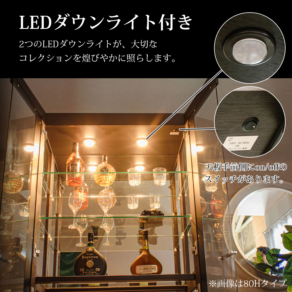 • LEDダウンライト付き で照明効果もあり、展示物を美しく演出