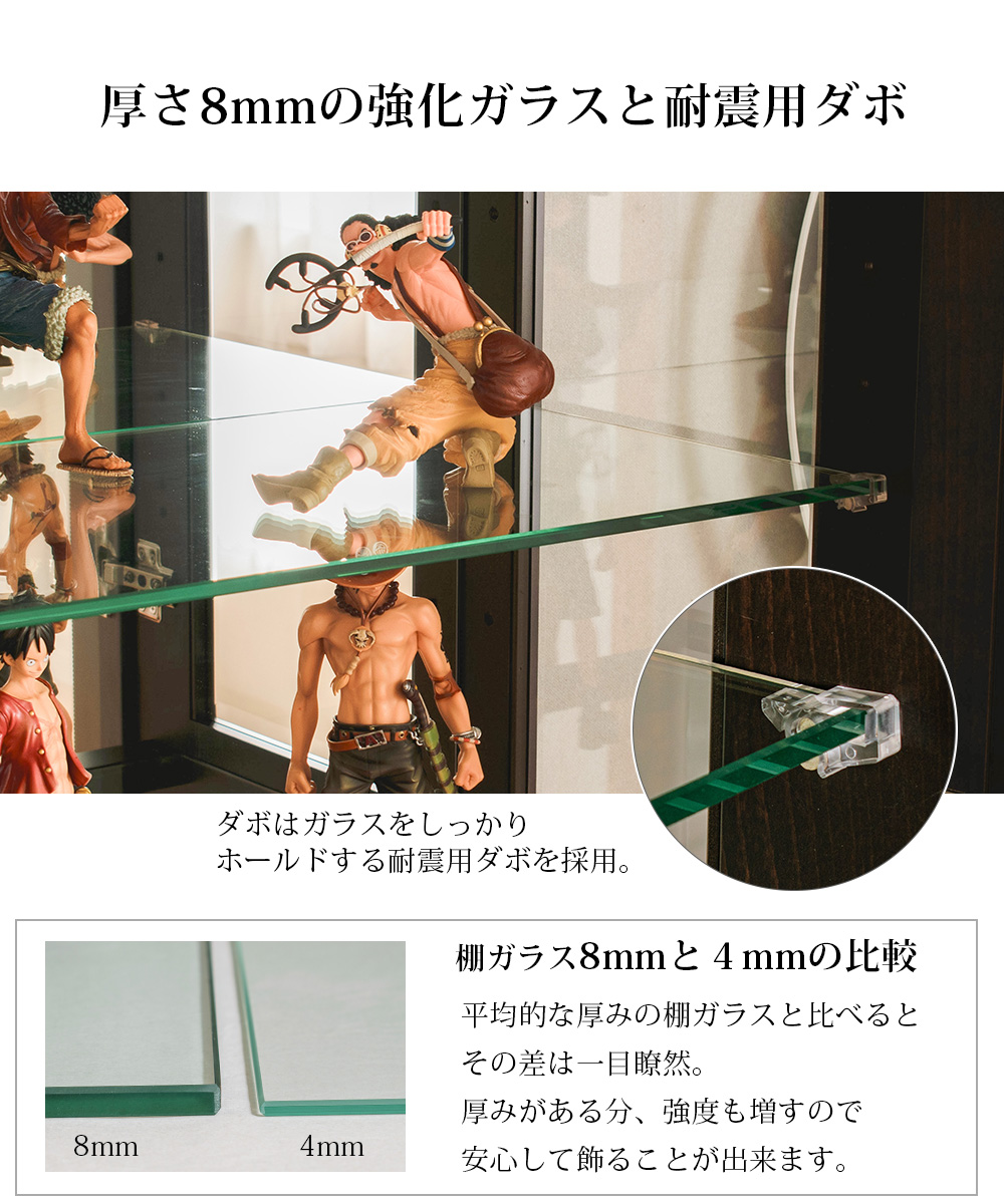 • 棚ガラス:8mm厚ガラス(可動式) / 4枚+中段1枚 標準装備