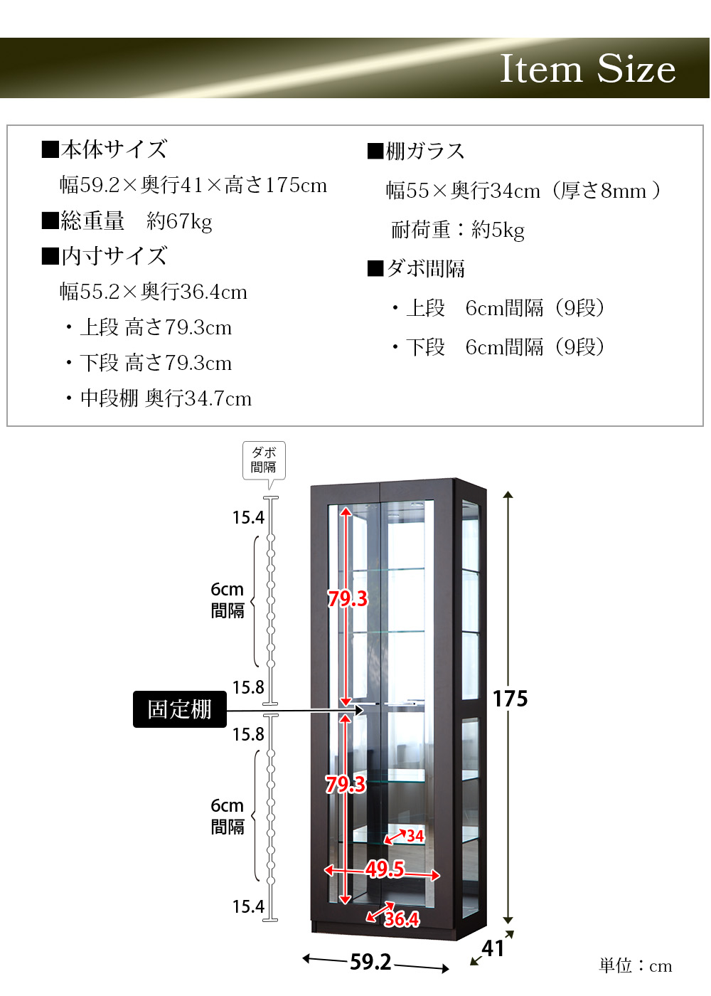 • 本体:幅59.2×奥行41×高さ175cm