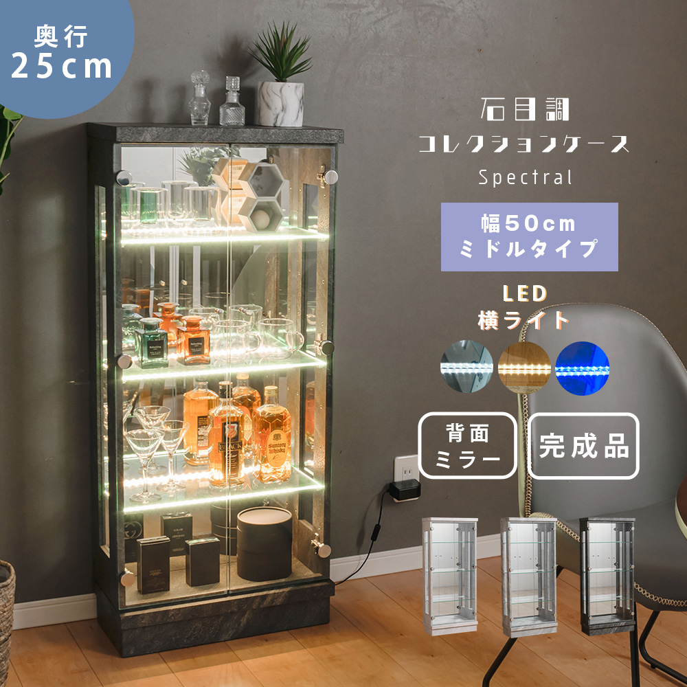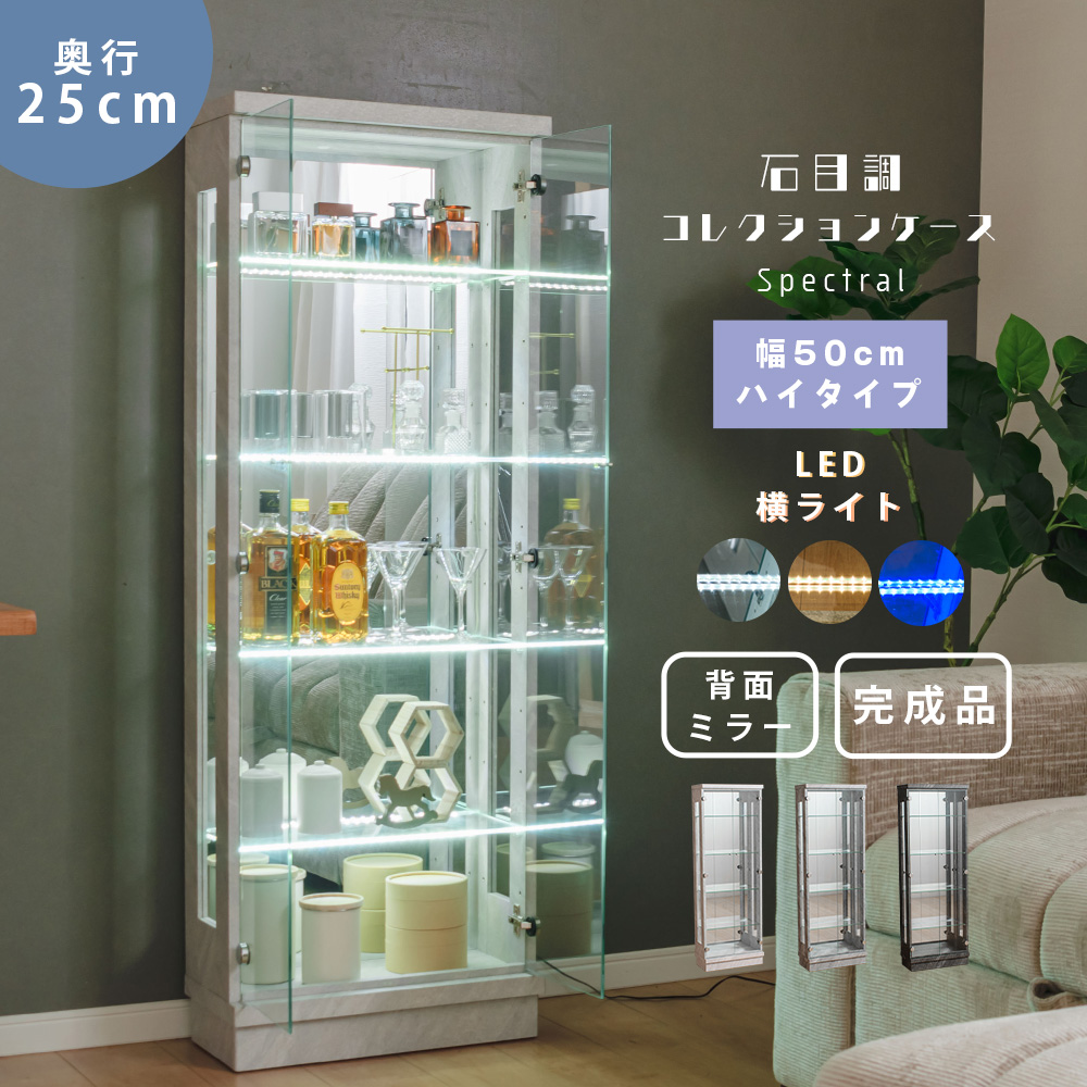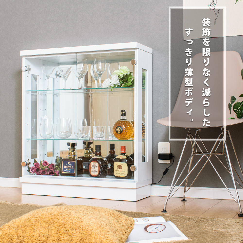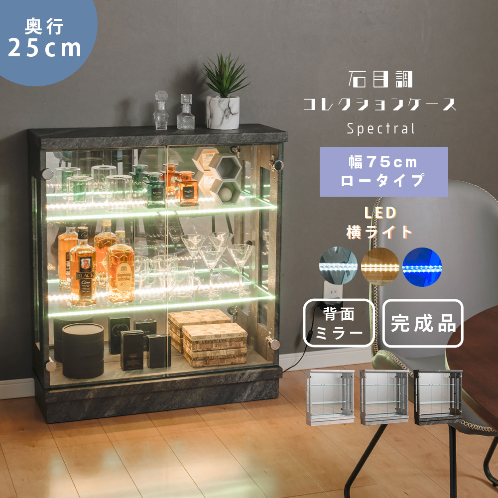 【10%OFF / 期間限定】 コレクションケース led 横ライト 幅75 奥行25 ロータイプ 薄型 コレクションボード ガラスケース キュリオケース 収納ケース 収納 ガンプラ フィギュア ウィスキー トミカ オフィス ガラス 棚 [スペクトル]